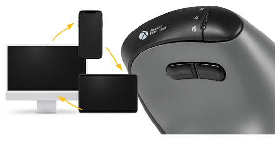Pracujete s více zařízeními? FastForward Pro usnadňuje přepínání mezi notebookem, tabletem nebo chytrým telefonem. Tlačítko pro přepínání zařízení bylo přesunuto na horní část myši, takže můžete bez námahy přepínat jednoduchým stisknutím tlačítka.