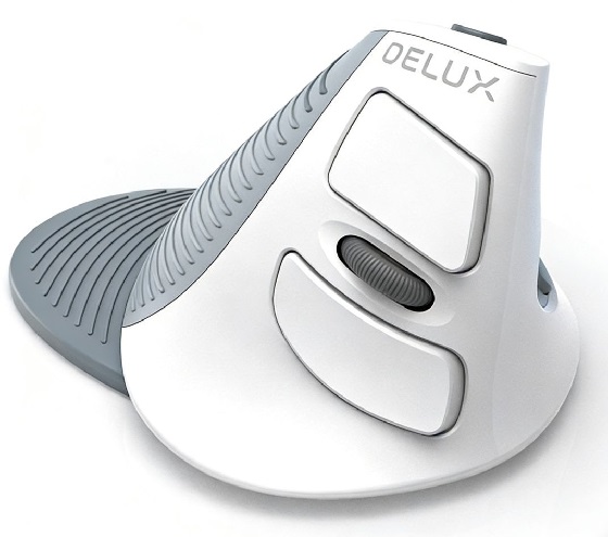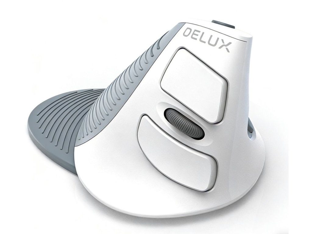 Specifikace: bezdrátová + Bluetooth počítačová vertikální myš Delux M618 s podpěrou dlaně bílá model M618G-DBW.