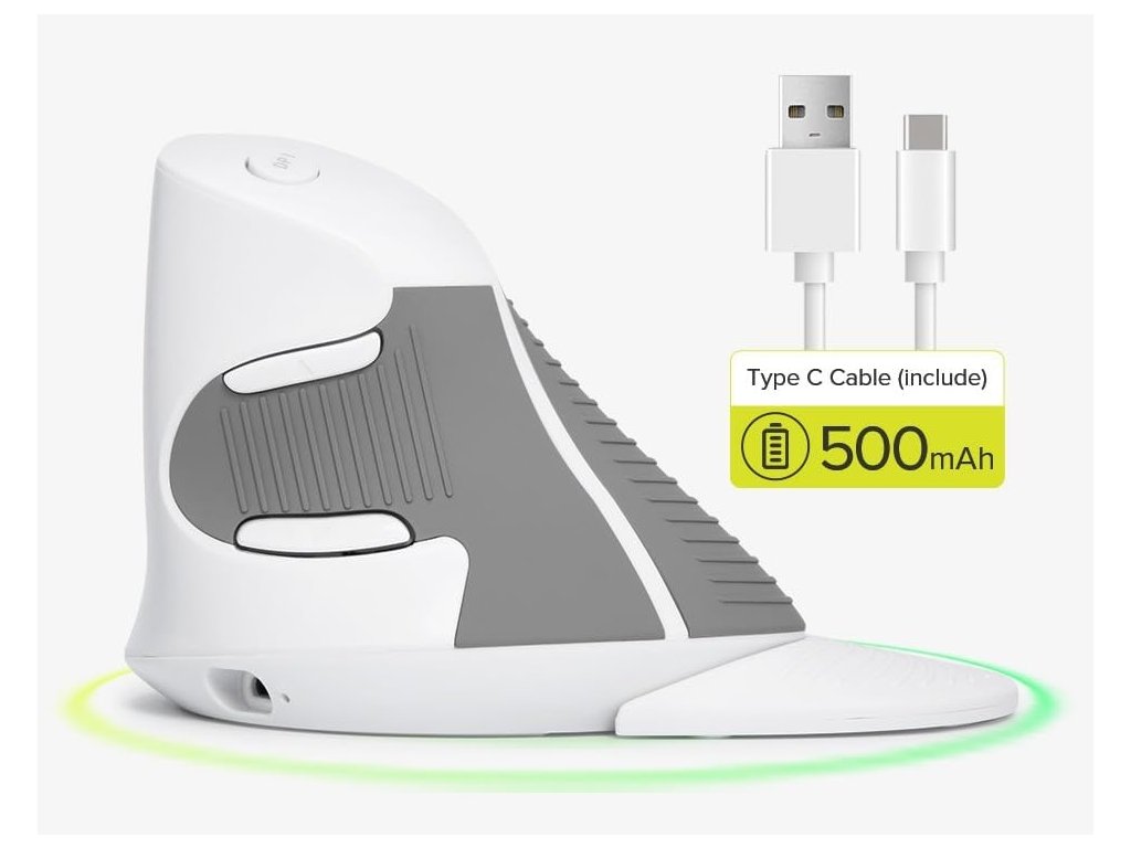 - obsah balení: vertikální bezdrátová myš, USB miniaturní přijímač, USB nabíjecí kabel, český návod