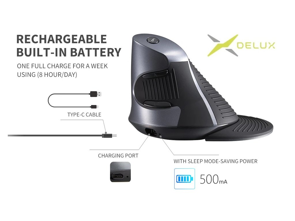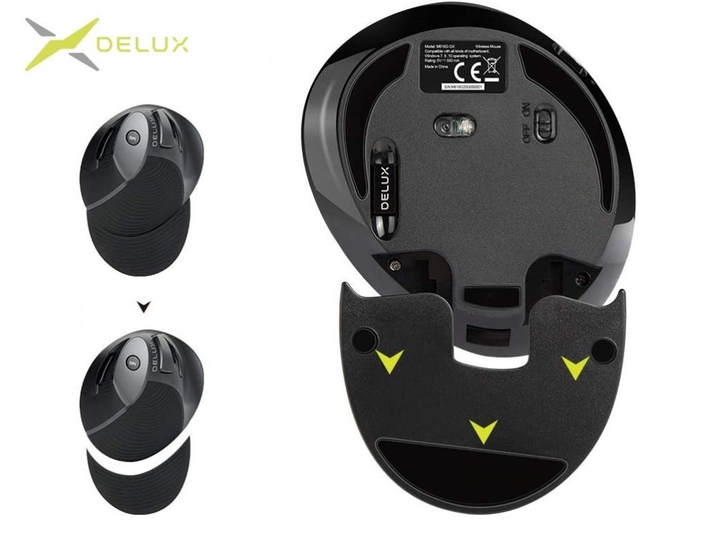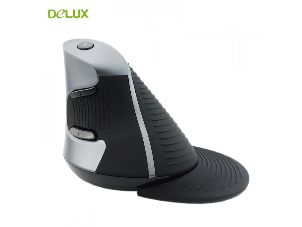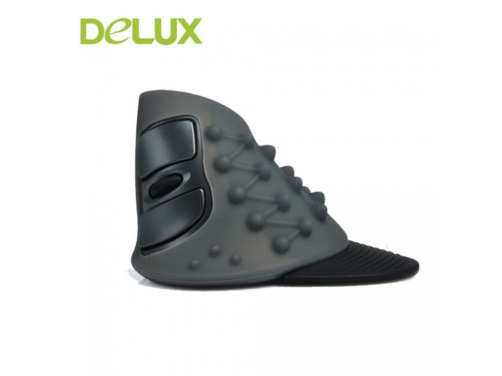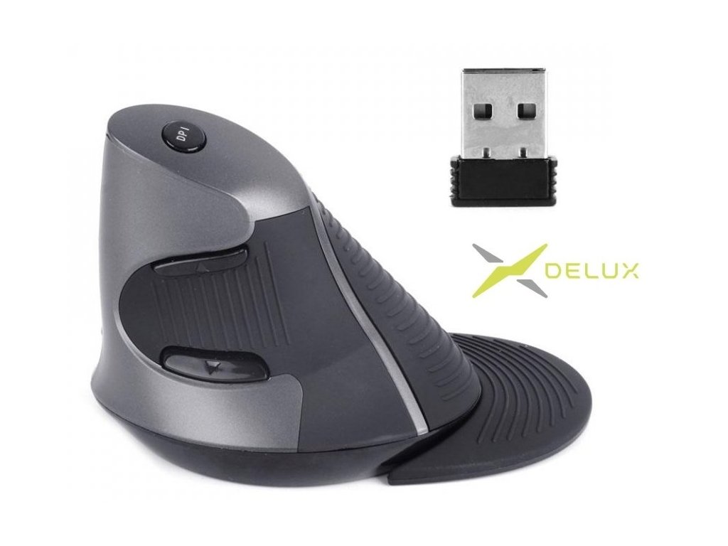 Specifikace: bezdrátová + Bluetooth počítačová vertikální myš Delux M618 s podpěrou dlaně grafitová model M618G-DB.