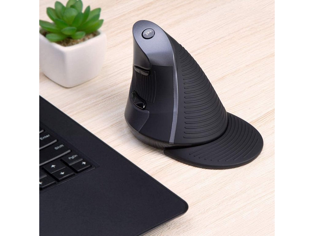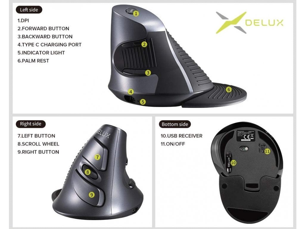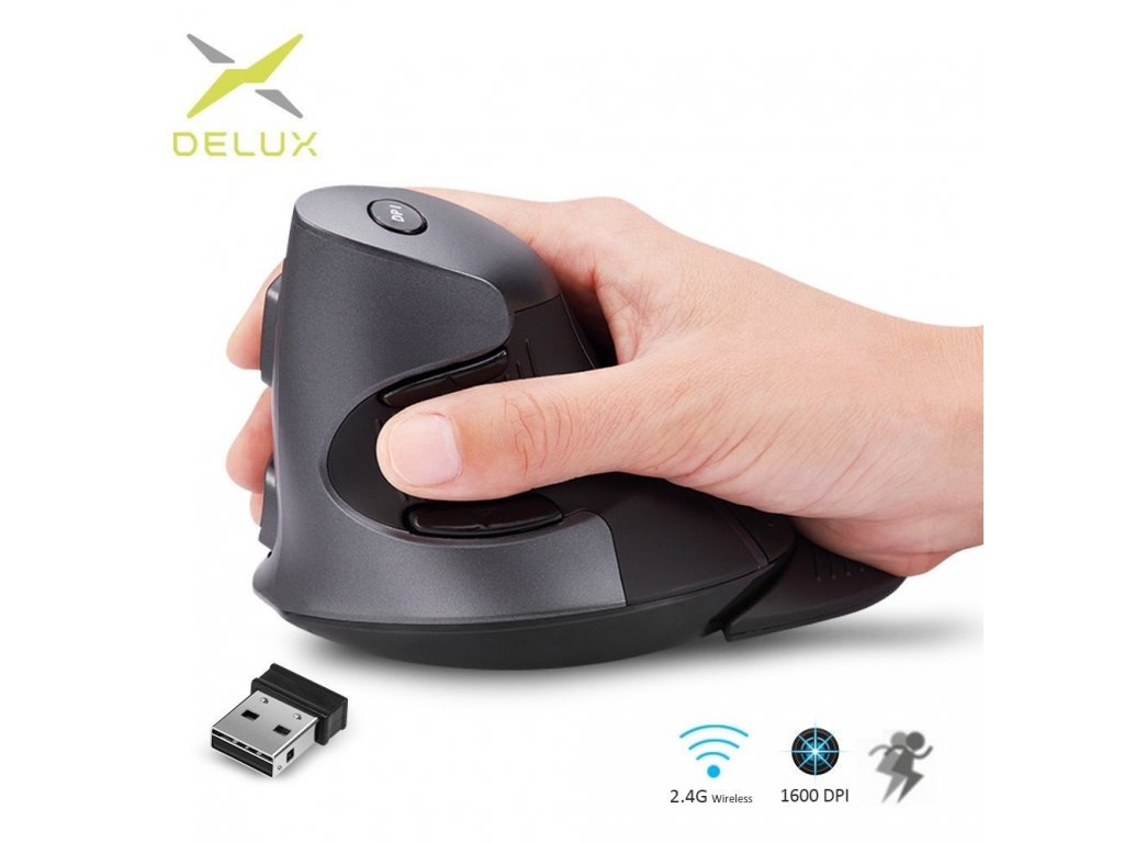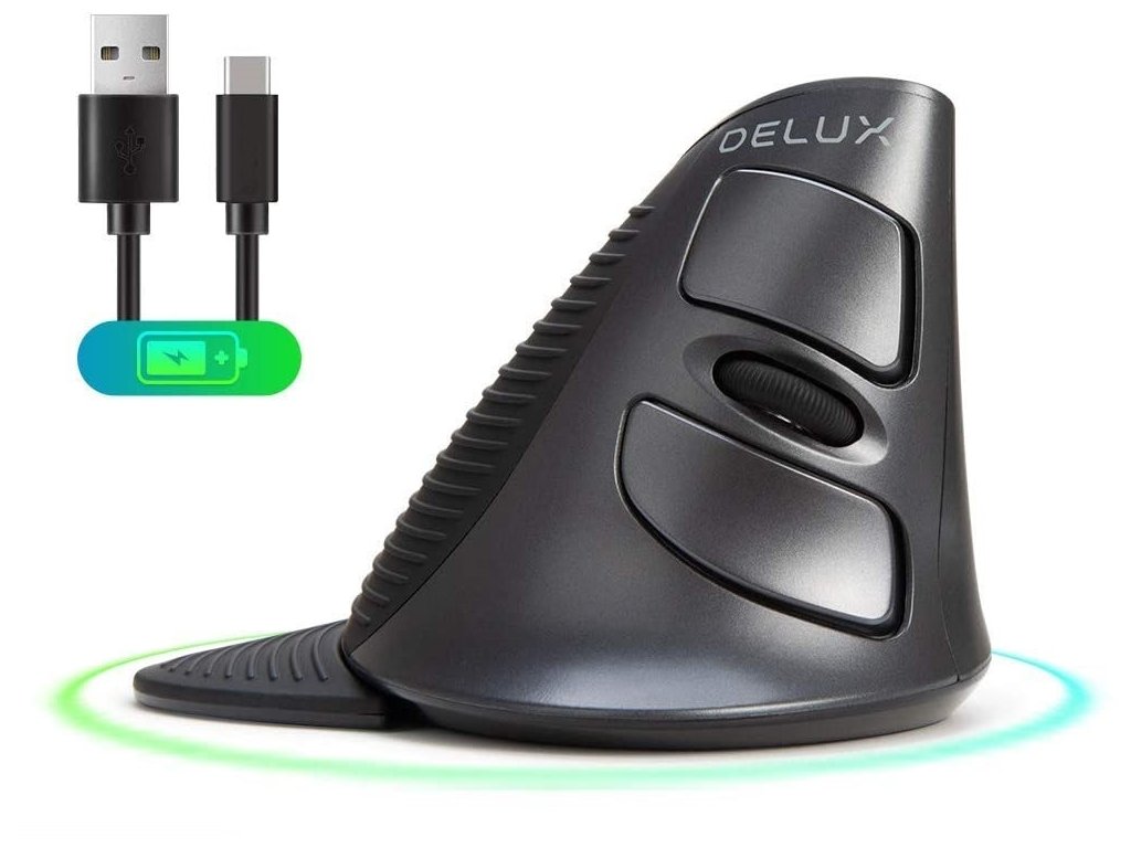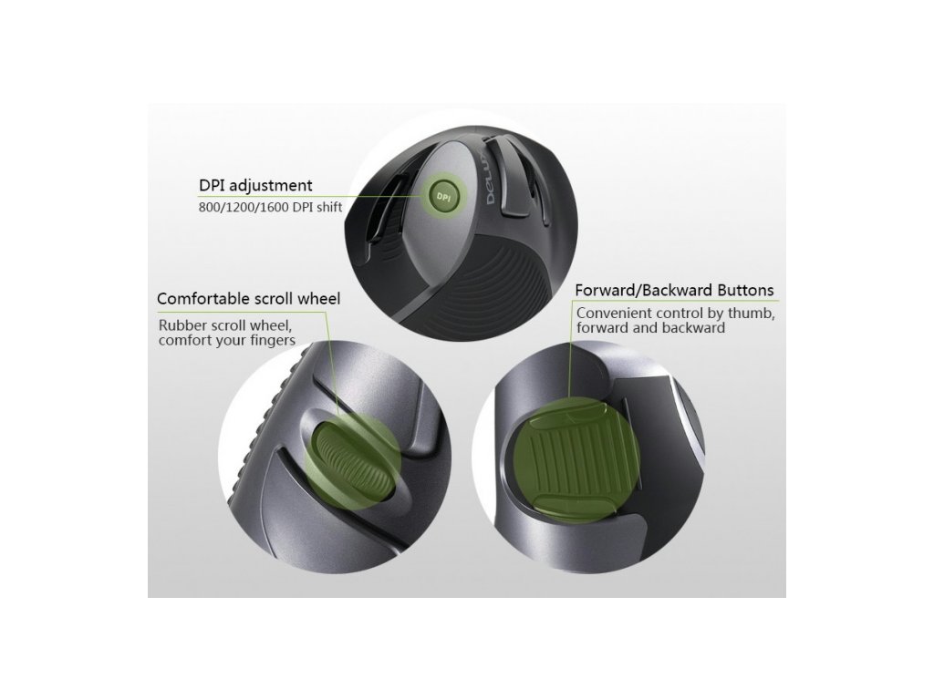 Specifikace: bezdrátová + Bluetooth počítačová vertikální myš Delux M618 s podpěrou dlaně grafitová model M618G-DB.
