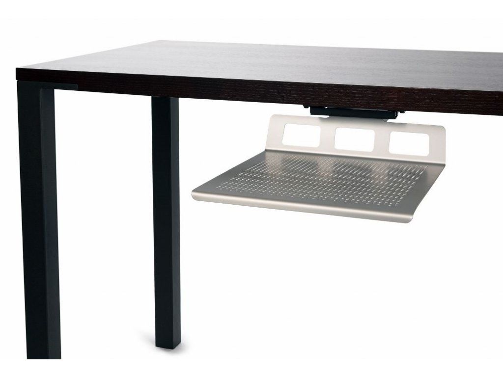 Humanscale představuje nový zásobník/držák Tech Tray, jednoduché řešení pro přístup k technologii a skladování. Držák je dimenzován tak, aby snadno udržel notebook s dokovací stanicí. Držák je upevněn v kolejnici, ve které se pohybuje vpřed a vzad, kolejnici si můžete připevnit na místo, kde potřebujete umístit další zařízení tak, aby vám nepřekáželo, ale aby bylo rychle k dispozici. Zásobník pomáhá vytvářet a optimalizovat pracovní prostor tím, že technologie nepřekáží na stole. Udržuje dané přístroje z očí a je na bezpečném místě v případě rozlité kávy. Kolejnice, která je součástí, umožňuje zasunutí nebo vysunutí držáku, který se zasune pod stůl a nikde nepřekáží. Stojan má na zadní straně otvory, ke kterým můžete upevnit případnou kabeláž, kterou budete mít vždy po ruce a nebudete je již nikdy hledat.