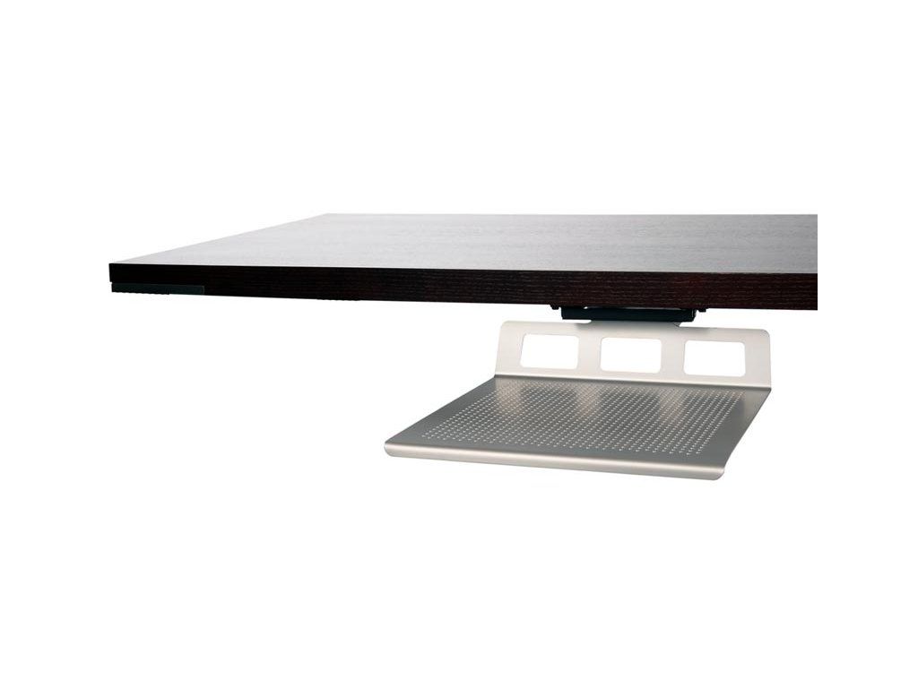 Humanscale představuje nový zásobník/držák Tech Tray, jednoduché řešení pro přístup k technologii a skladování. Držák je dimenzován tak, aby snadno udržel notebook s dokovací stanicí. Držák je upevněn v kolejnici, ve které se pohybuje vpřed a vzad, kolejnici si můžete připevnit na místo, kde potřebujete umístit další zařízení tak, aby vám nepřekáželo, ale aby bylo rychle k dispozici. Zásobník pomáhá vytvářet a optimalizovat pracovní prostor tím, že technologie nepřekáží na stole. Udržuje dané přístroje z očí a je na bezpečném místě v případě rozlité kávy. Kolejnice, která je součástí, umožňuje zasunutí nebo vysunutí držáku, který se zasune pod stůl a nikde nepřekáží. Stojan má na zadní straně otvory, ke kterým můžete upevnit případnou kabeláž, kterou budete mít vždy po ruce a nebudete je již nikdy hledat.