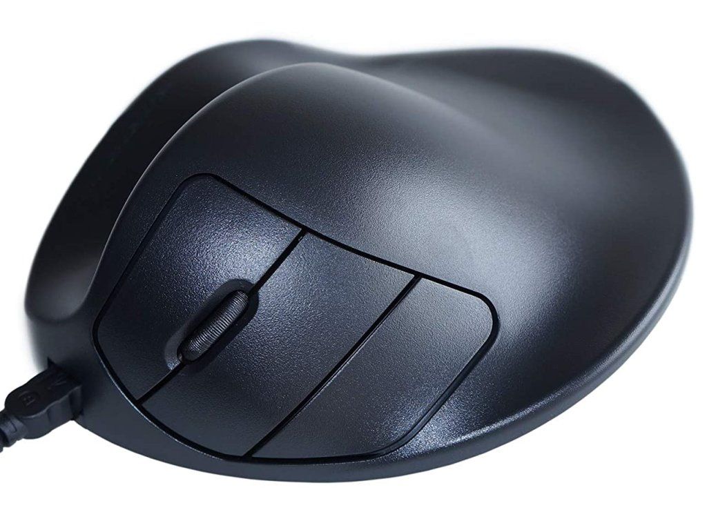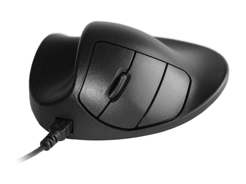 Wired left-handed mouse HandShoe Mouse has 3 buttons including a scroll wheel. The left and right mouse buttons are controlled by the index and middle fingers. The scroll wheel can be used for navigation and can be controlled with the index or middle finger. The ergonomic mouse "HandShoe Mouse" keeps the arm in a natural position and minimizes the risk of consequences from long-term use of a computer mouse.
