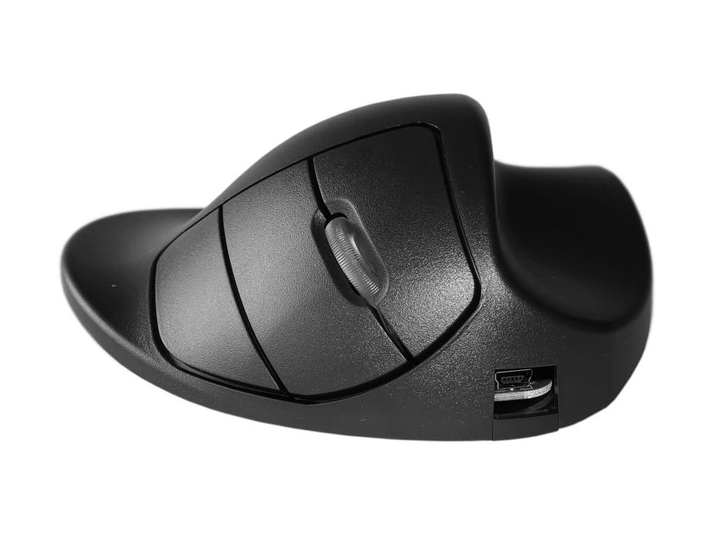 The wireless right-handed mouse HandShoe Mouse has 3 buttons including a scroll wheel. The left and right mouse buttons are controlled by the index and middle fingers. The scroll wheel can be used for navigation and can be controlled with the index or middle finger. The ergonomic mouse "HandShoe Mouse" keeps the arm in a natural position and minimizes the risk of consequences from long-term use of a computer mouse.