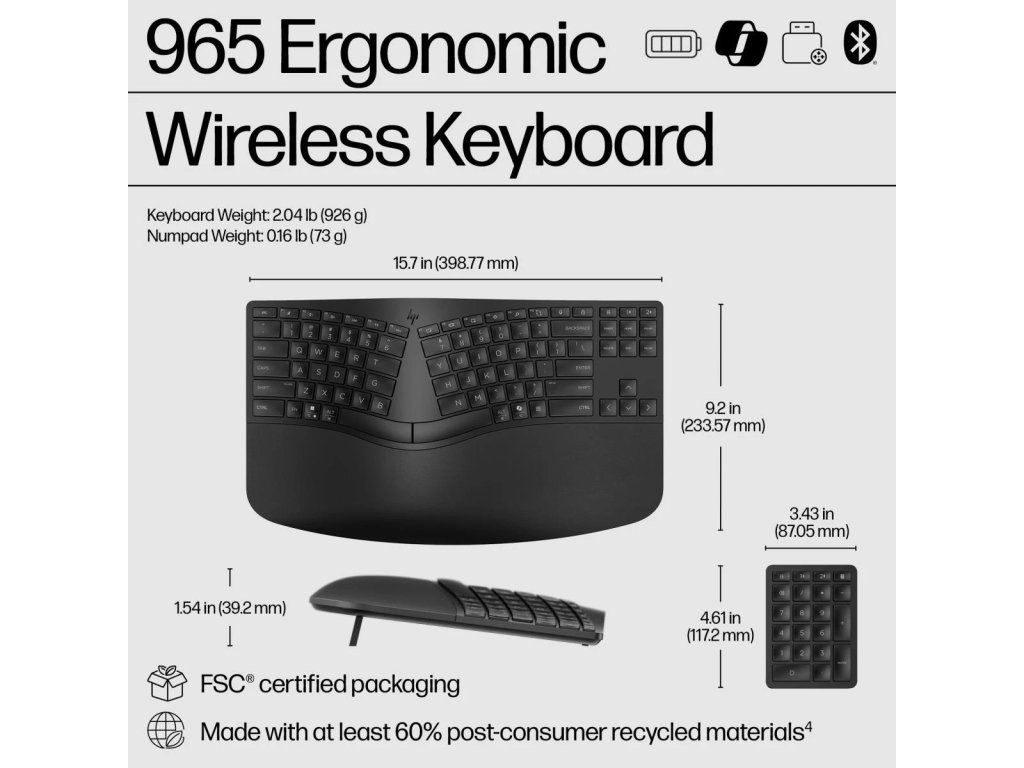 Specification: HP 965 wireless keyboard set, including numeric keypad, black model 7E756AA.