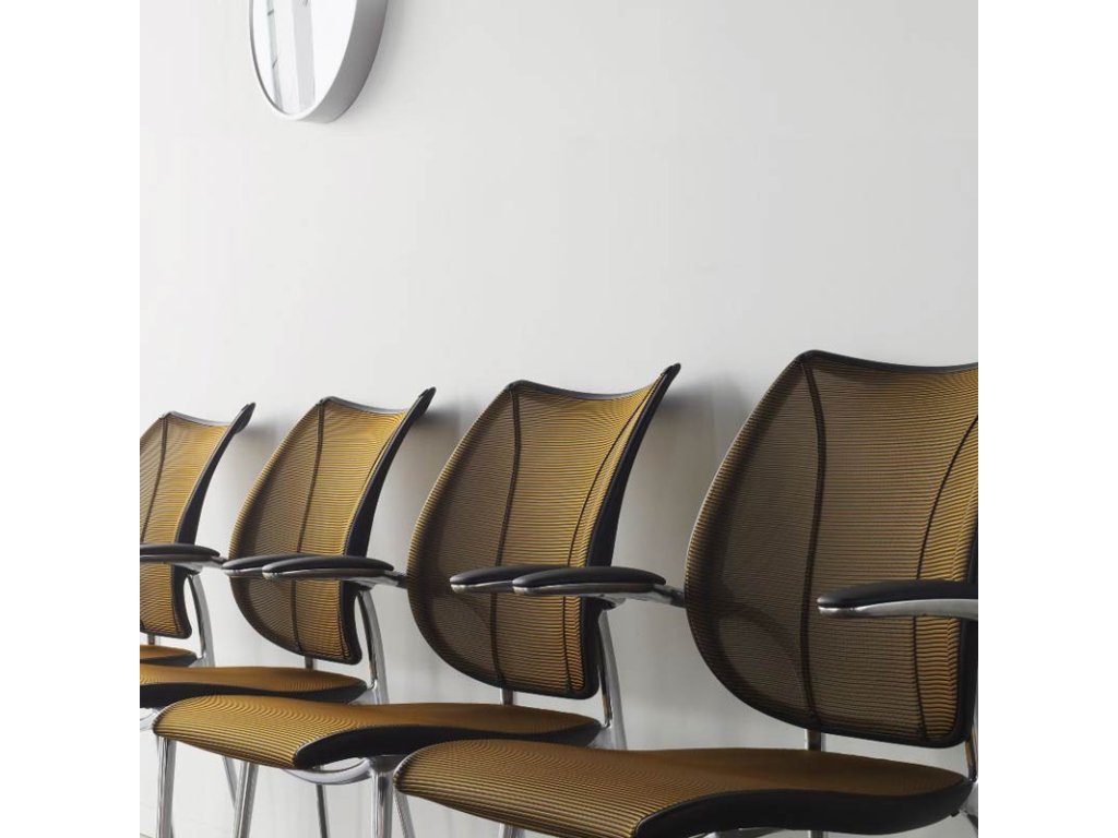 Designed to complement the style and character of the Liberty office chair. The side view offers beauty, performance and unprecedented comfort in its class. Its backrest highlights the exclusive sensitive form of Liberty mesh technology, in which three patterns of non-stretch mesh are sewn to create a contour that automatically ensures perfect lumbar alignment for all users. The backrest can be tilted, which aids comfort, only if the mesh seat has a frameless front edge.