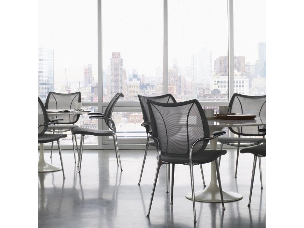 Its backrest features Liberta's excellent forming mesh technology, in which three types of stress-free mesh filling are sewn together to create a layered form, similarly providing perfect and anatomical lumbar support, a support for everyone. The backrest pivots for improved adaptability and comfort, while the frameless mesh seat is soft yet supportive for unrivaled quality seating. This chair was created by Niels Diffrient, who thought of both the chairs and the environment, which is why the Liberty conference chair is made of 100% recycled extruded aluminum and a total of 80% recycled and 95% recyclable.