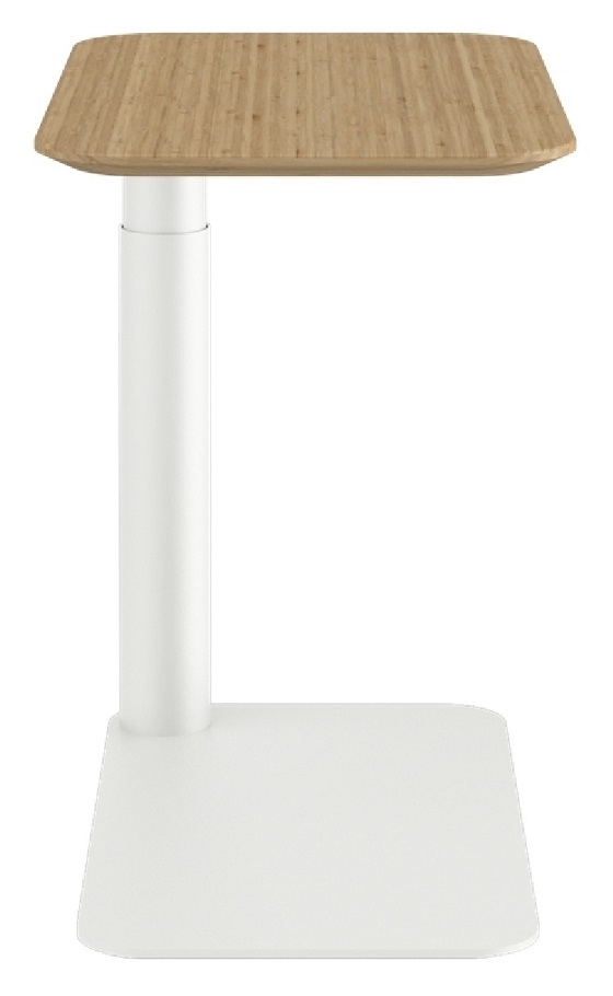 Specification: white height-adjustable desk model Float Micro including bamboo table top measuring 560 x 355 mm (fc1wh2214bm).