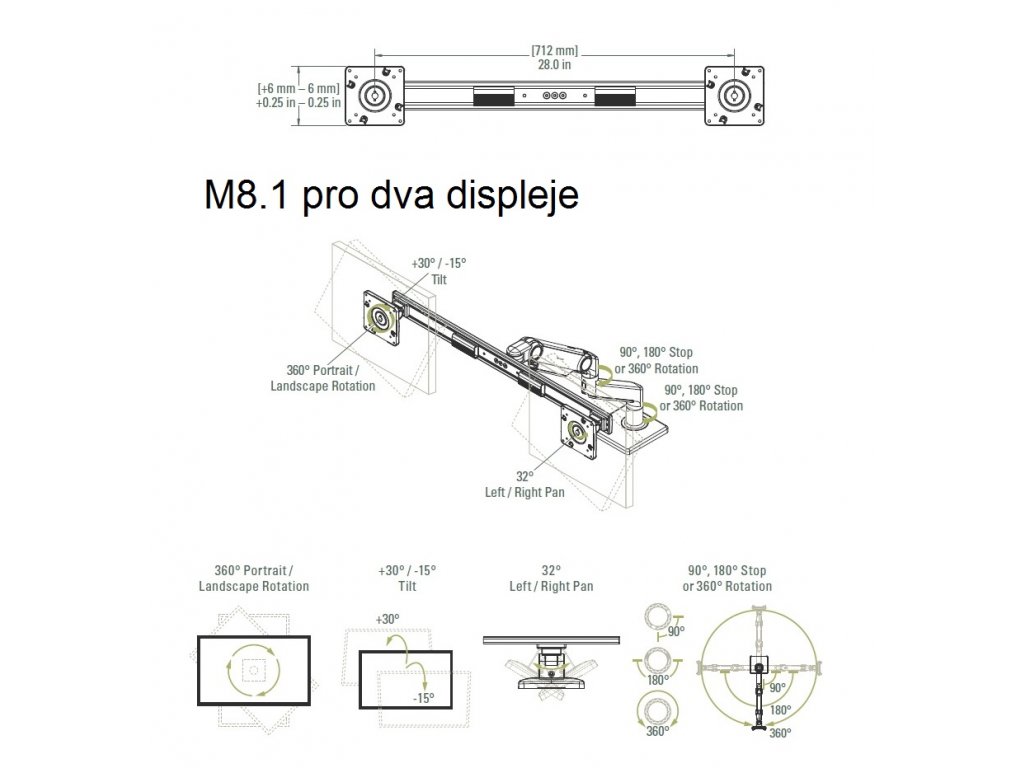 Specification: arm / stand Humanscale model M8.1 for two monitors with a dynamic element in the design: white-polished-aluminum, fixing on a screw "B" M81NTNBWB2W.