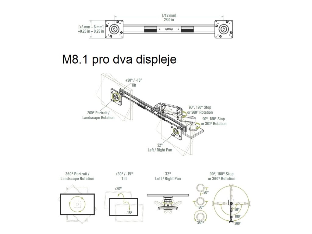 - adjustment range of the distance of the monitor on the crossbar: up to 710 mm