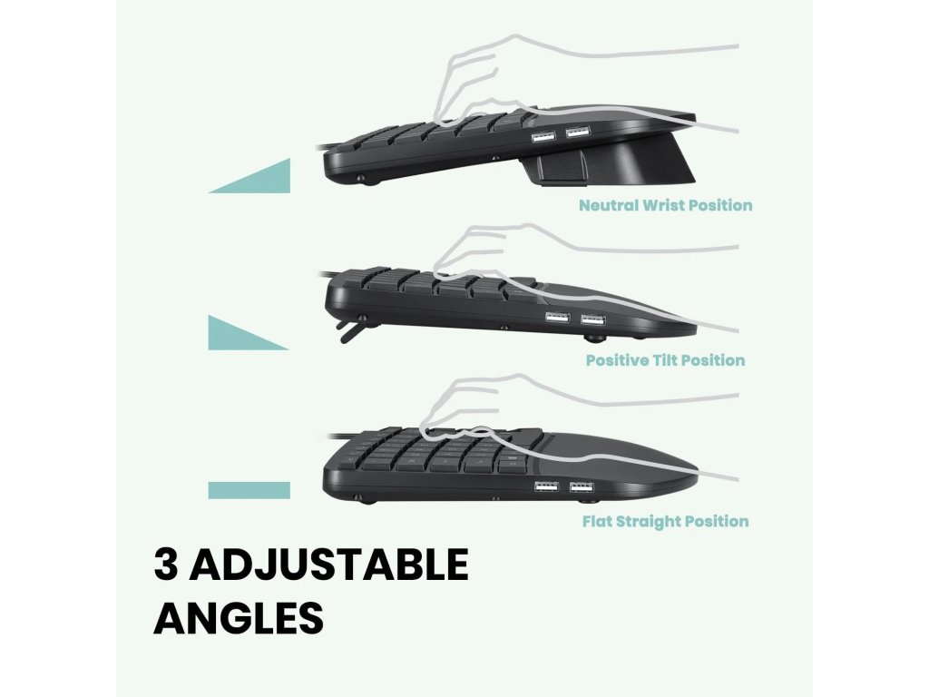 Equip your computer with a keyboard with an elegant modern design, the thickest part of which is only 38 mm, making it a stylish ergonomic keyboard with a slim profile. The 3D design of the keyboard refers to the undulation of the height of the key set, which is beneficial for improving typing comfort. It is a one-piece keyboard with keys divided into two or three groups, which allows the user to type from a different angle than on a classic keyboard.
