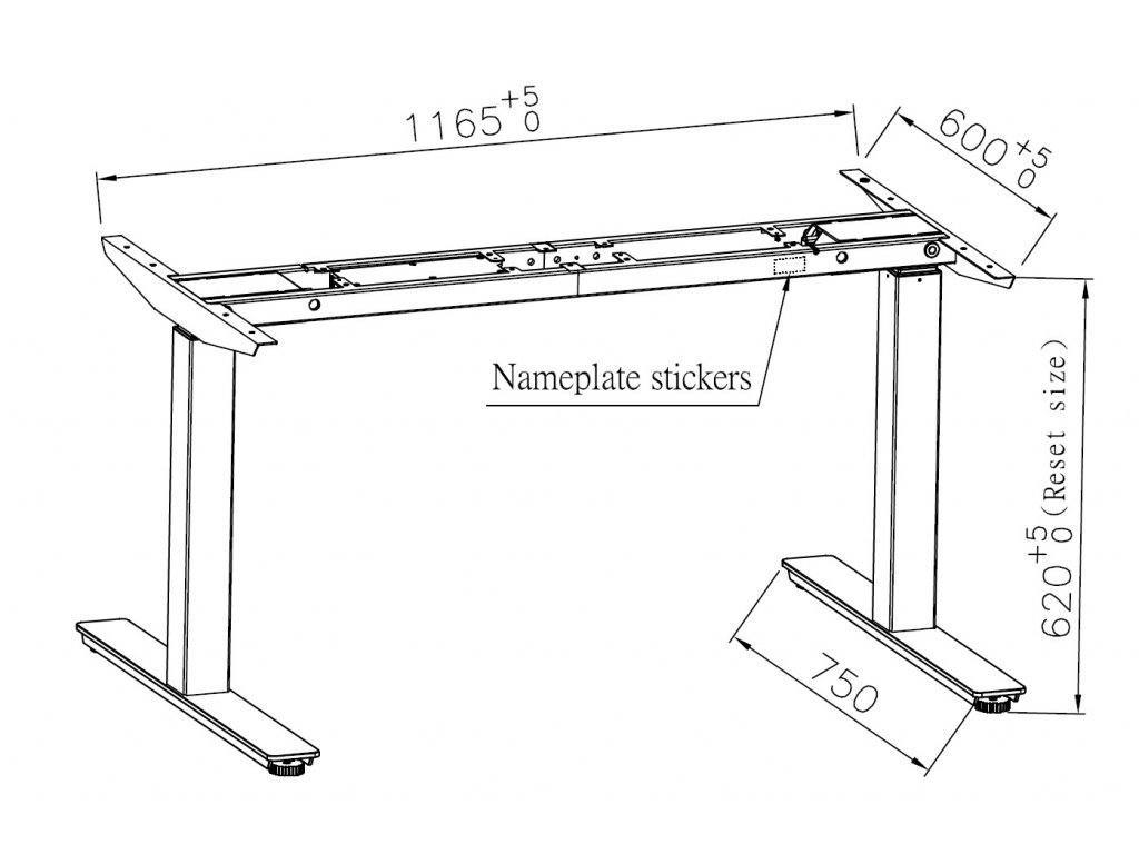 Elektrická nastavitelná podnož je pro stolovou desku v šíři: 120 až 185 cm, takže si můžete zvolit přesný rozměr v tomto rozmezí.