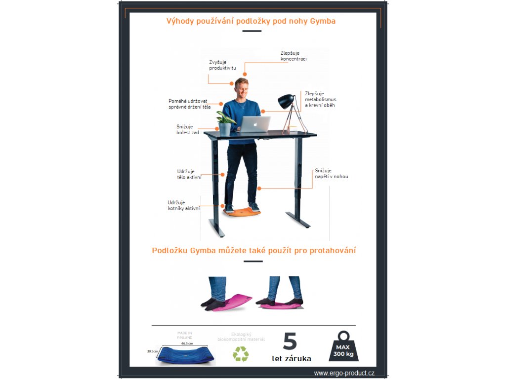 Moderní sedavý způsob života není ve všech ohledech vždy nejideálnější a je nutné střídat sezení se stáním. Stání si však můžete velice zpříjemnit aktivním stáním na podložce Gymba.