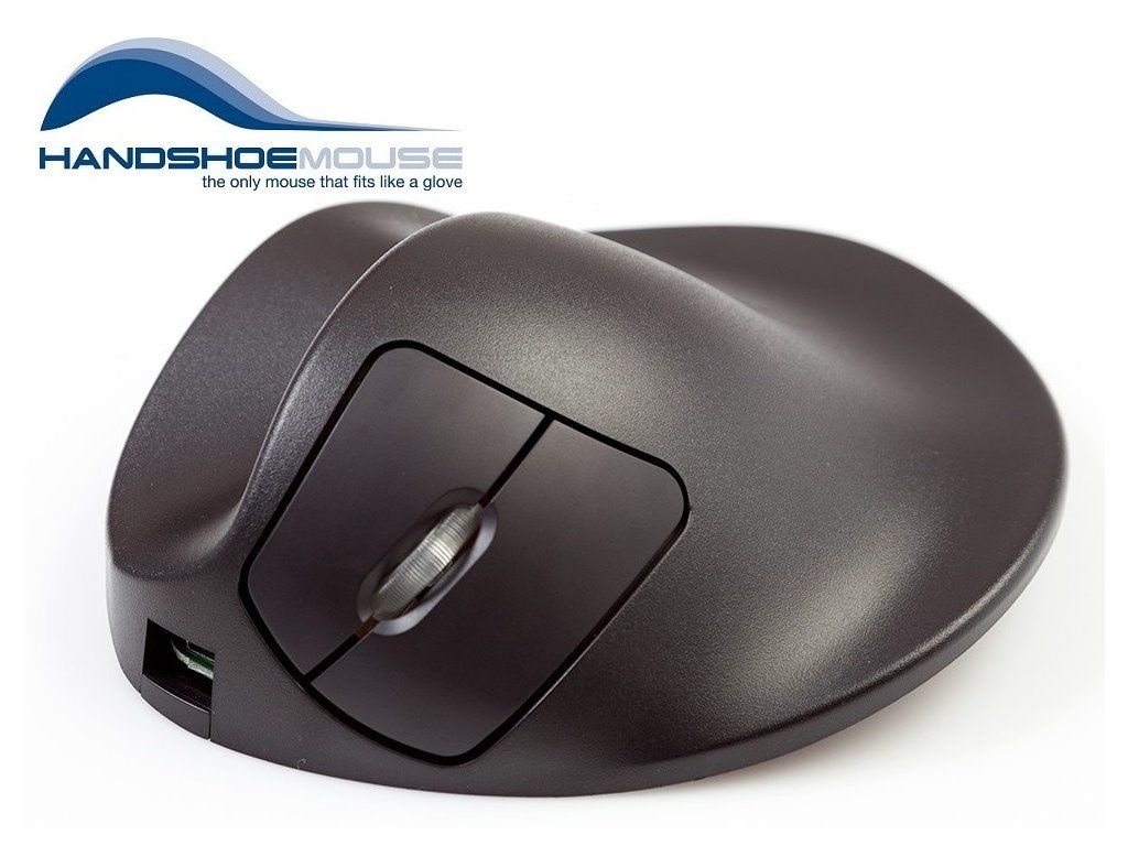 Drátová levoruká myš HandShoe Mouse má 3 tlačítka včetně rolovacího kolečka. Levé a pravé tlačítko myši jsou ovládány ukazováčkem a prostředníčkem. Rolovací kolečko lze použít pro navigaci a může být ovládán ukazováčkem nebo prostředníčkem. Ergonomická myš ,,HandShoe Mouse" udržuje paži v přirozené pozici a minimalizuje riziko vzniku následků z dlouhodobého používání počítačové myši.