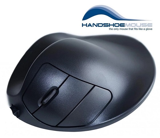 Bezdrátová levoruká myš HandShoe Mouse má 3 tlačítka.Levé a pravé tlačítko myši jsou ovládány ukazováčkem a prostředníčkem. Rolovací kolečko lze použít pro navigaci a může být ovládáno ukazováčkem nebo prostředníčkem. Ergonomická myš ,,HandShoe Mouse" udržuje paži v přirozené pozici a minimalizuje riziko vzniku následků z dlouhodobého používání počítačové myši.