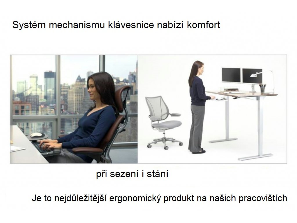 Mechanismus pro klávesnici je vedle židle nejdůležitější součástí ergonomického pracoviště. Pro lidi, kteří pracují na počítači více než 2 hodiny denně, poskytuje moderní mechanismus pro klávesnici důležitou ochranu proti různým muskuloskeletárním poruchám (poruchám svalů a kostí) včetně syndromu karpálního tunelu, bolestem krční páteře a okrajovým částem páteře.