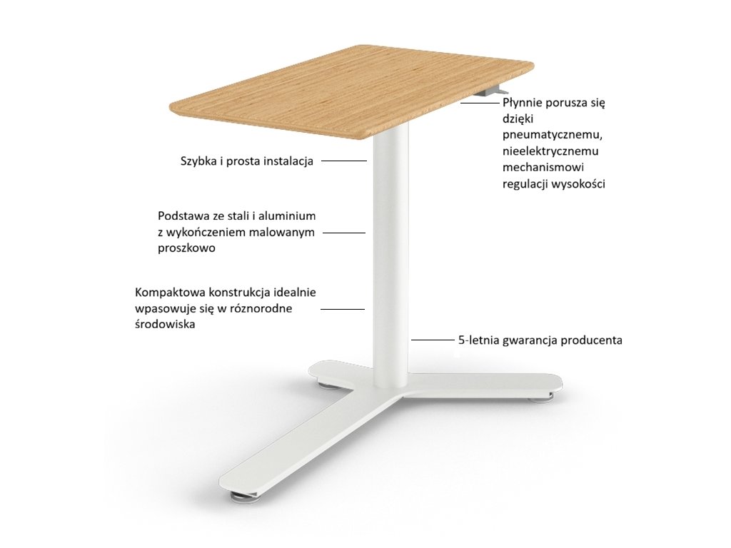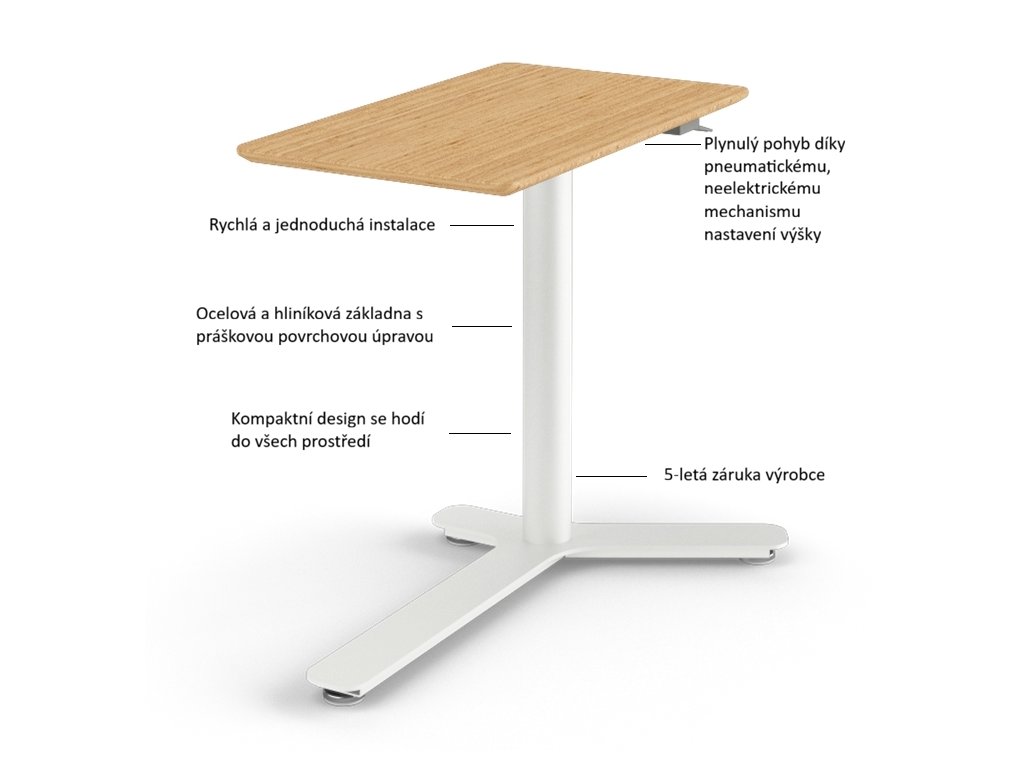 Sezení není evolučně přirozenou polohou lidského těla a již 2-3 hodiny každodenní práce u stolu mají trvalý vliv na Vaše zdraví. S výškově stavitelnými stoly však můžete svému tělu prospět, neboť i pouhým stáním při práci a drobnými pohyby v oblasti pánve, které si při práci ani neuvědomujete, posilujete bederní páteř a spalujete mnohem více kalorií než při sezení. Pokud při práci stojíte, jste navíc mnohem bystřejší a výkonnější. U takto řešeného pracoviště můžete střídat sezení/stáni podle potřeby bez omezení.