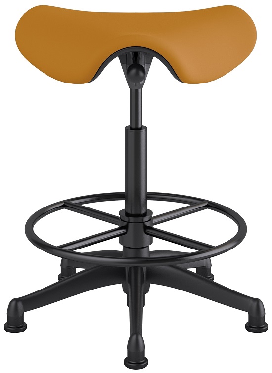 Židle Humanscale model Freedom Saddle je ve specifikaci: kříž v provedení Graphite, potahová látka Lotus 302 Ochre, extra vysoký píst s kruhem pro oporu nohou s kluzáky, kód F300GK302YG.