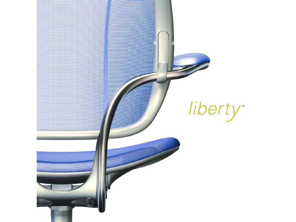 Liberty je luxusní mnohoúčelová židle s patentovaným dvoukloubovým mechanismem při naklápění opěradla. Židle automaticky zajišťuje správný protitlak dle proporcí uživatele bez jakéhokoliv nastavování. Liberty je dodávaná s loketními opěrkami ve dvou provedení. Ty jsou nastavitelné v rozmezí 12cm. Typ židle je vhodný pro použití do kanceláře, hodí se však také jako konferenční v provedení bez područek. K židli je možné objednat ramínko na sako.