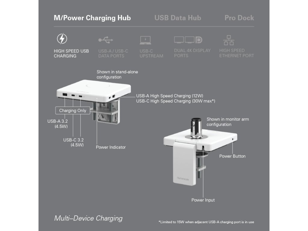 - kompatibilní s M/Connect 2 a M/Power, prvními integrovanými rameny na monitory a dokovacími stanicemi svého druhu