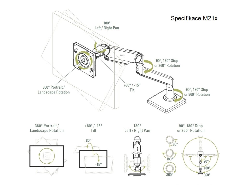 - kompatibilní s M/Connect 2 a M/Power, prvními integrovanými rameny na monitory a dokovacími stanicemi svého druhu
