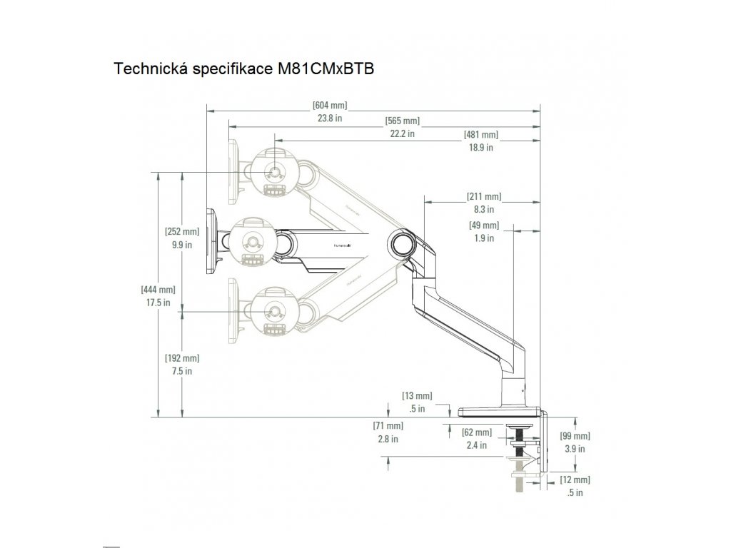 Specifikace: držák Humanscale model M8.1 pro těžší monitor s dynamickým článkem a vestavěnou dokovací stanicí M/Connect 2 pro jeden monitor v provedení: černá, upevnění na šroub ,,B" M81M2-BBBTBNA.