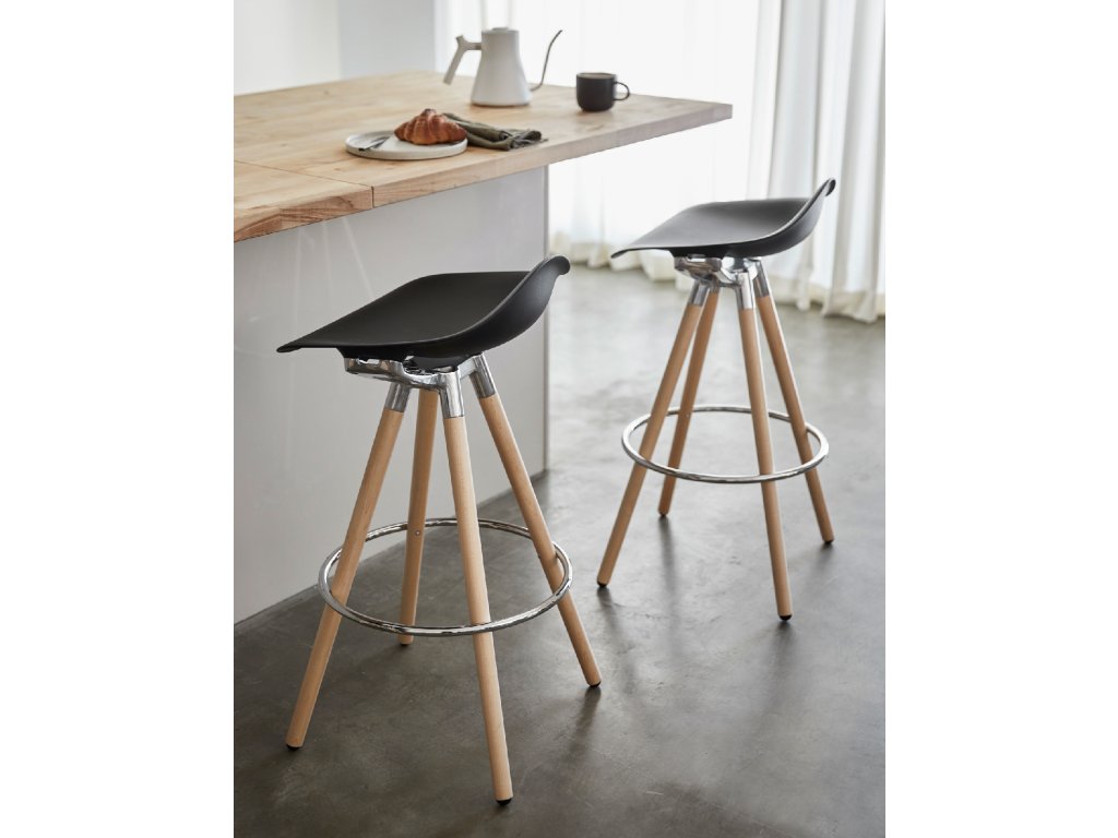 Židle Humanscale model Sedeo je ve specifikaci: rám v černém provedení, varianata nohou Ebenový Dub s kruhem pro oporu nohou s kluzáky, kód ASBEBWGC.