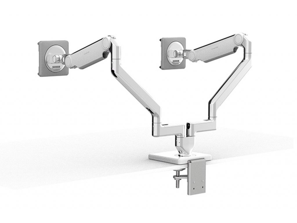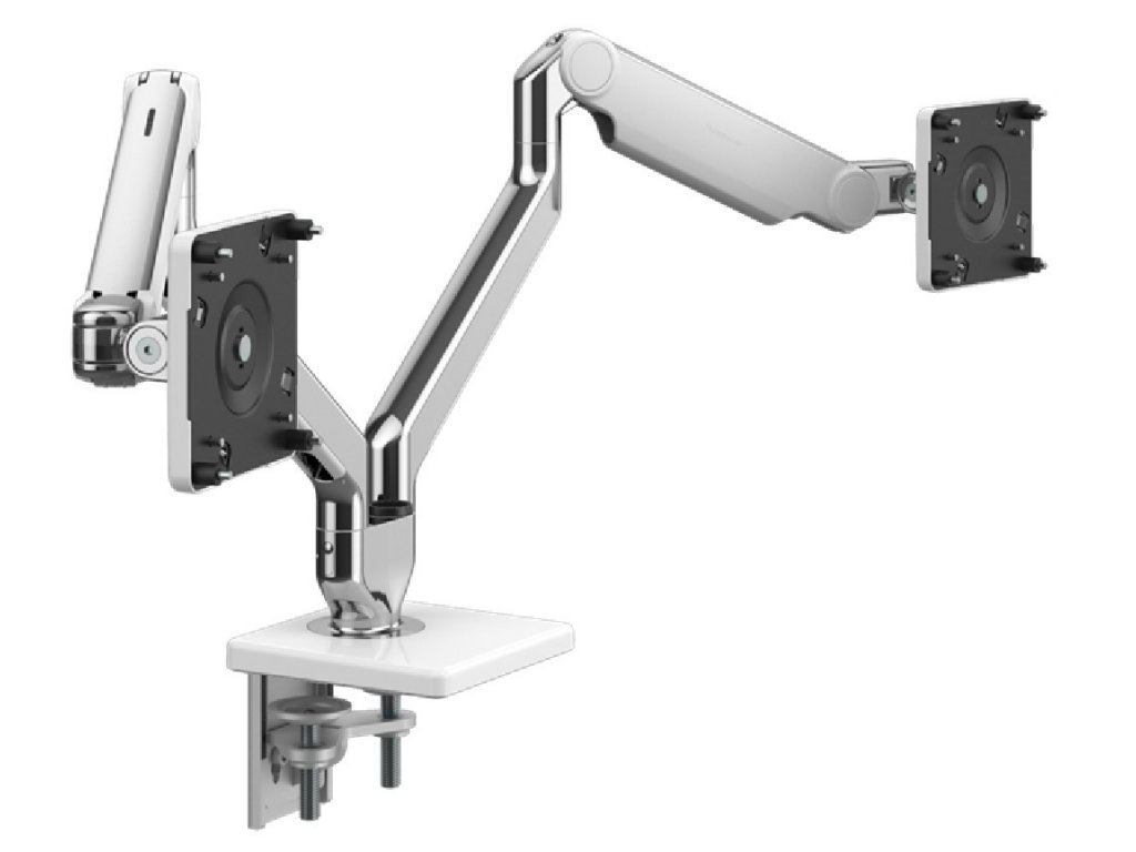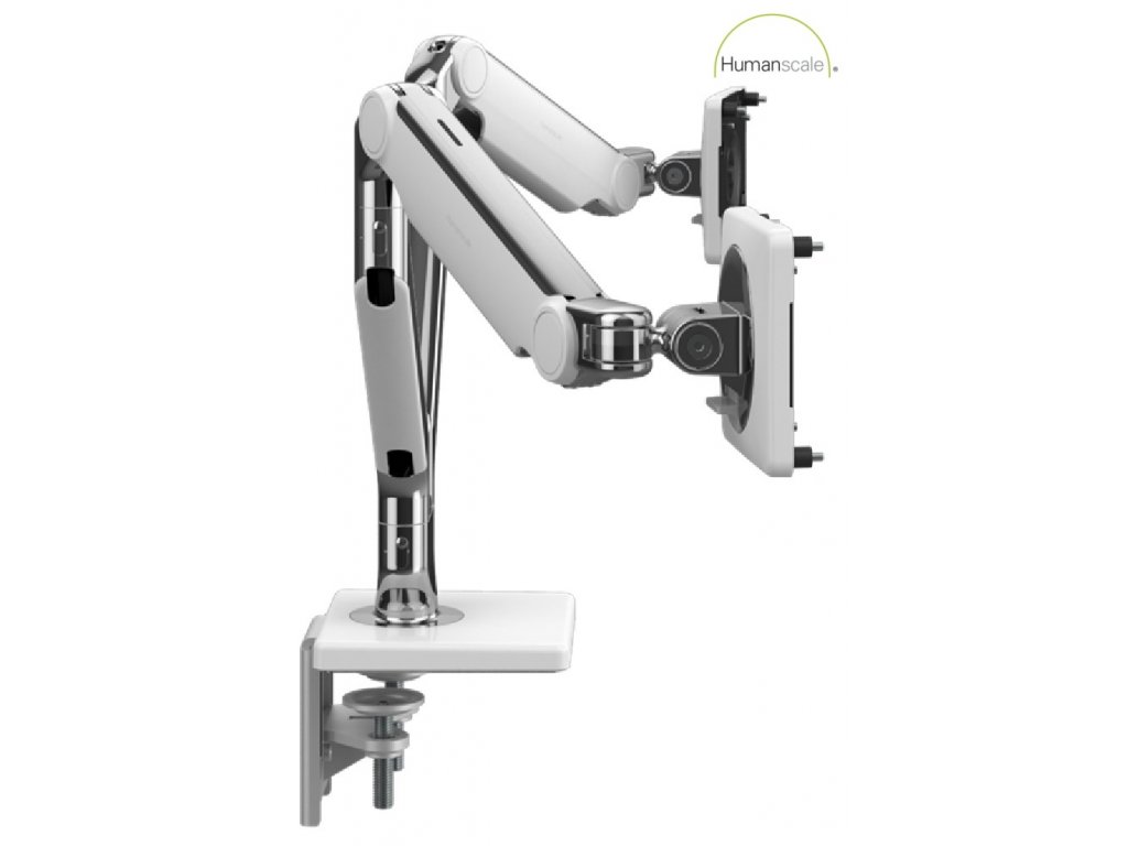 Humanscale X2 držák pro dva monitory upevnění na svěrku bílá-leštěný hliník