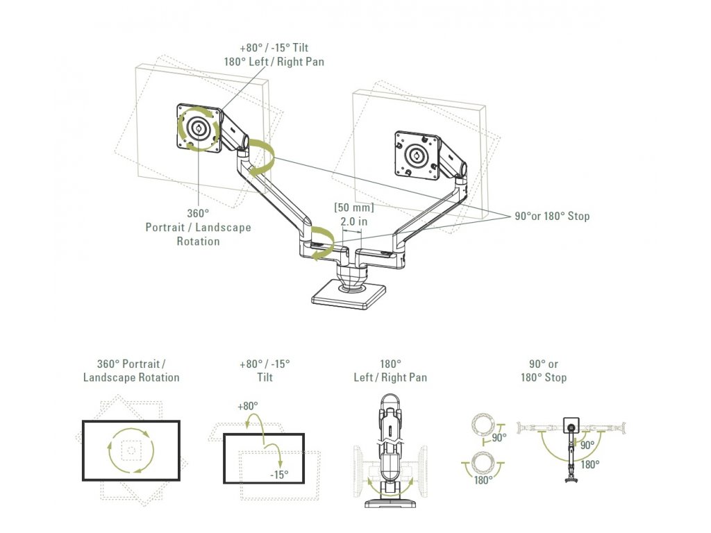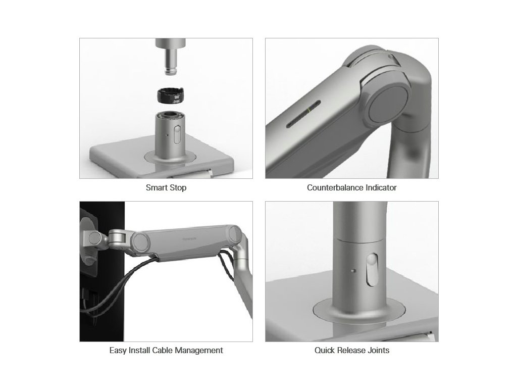- kompatibilní s M/Connect 2 a M/Power, prvními integrovanými rameny na monitory a dokovacími stanicemi svého druhu (není součást balení)