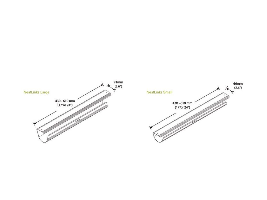 Kabelové organizéry NeatLinks lze nainstalovat v nepřeberném množství konfigurací, jež vyhovují každému uživateli i každému jedinečnému pracovnímu prostředí. Ideální pro kabiny, výukové a konferenční místnosti, provozní místnosti a soukromé uzavřené i otevřené kanceláře. Pro optimální využití ukládejte zásuvkové lišty a balasty v krycích lištách o velkém průměru (91 mm) a kabely veďte skrz lišty o malém průměru (66 mm). Kabelové organizéry nabízíme také v šedém provedení.