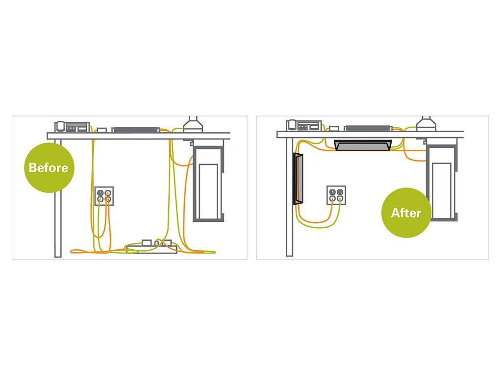 Kabelové organizéry NeatLinks lze nainstalovat v nepřeberném množství konfigurací, jež vyhovují každému uživateli i každému jedinečnému pracovnímu prostředí. Ideální pro kabiny, výukové a konferenční místnosti, provozní místnosti a soukromé uzavřené i otevřené kanceláře. Pro optimální využití ukládejte zásuvkové lišty a balasty v krycích lištách o velkém průměru (91 mm) a kabely veďte skrz lišty o malém průměru (66 mm). Kabelové kanály nabízíme také v černém provedení.