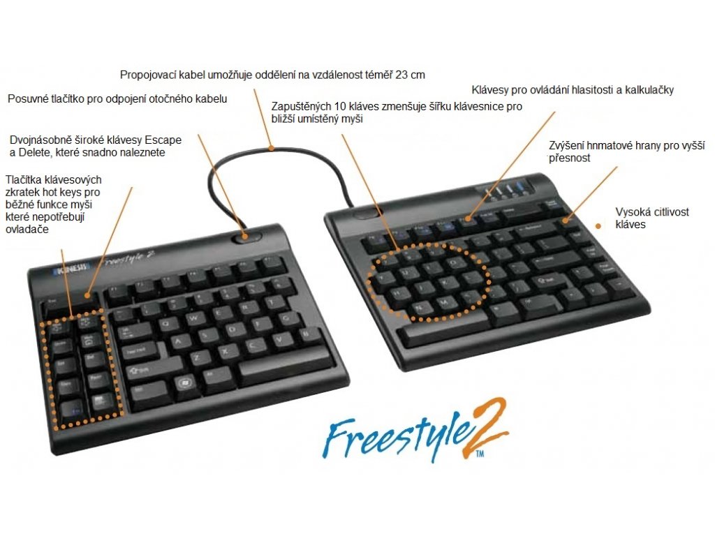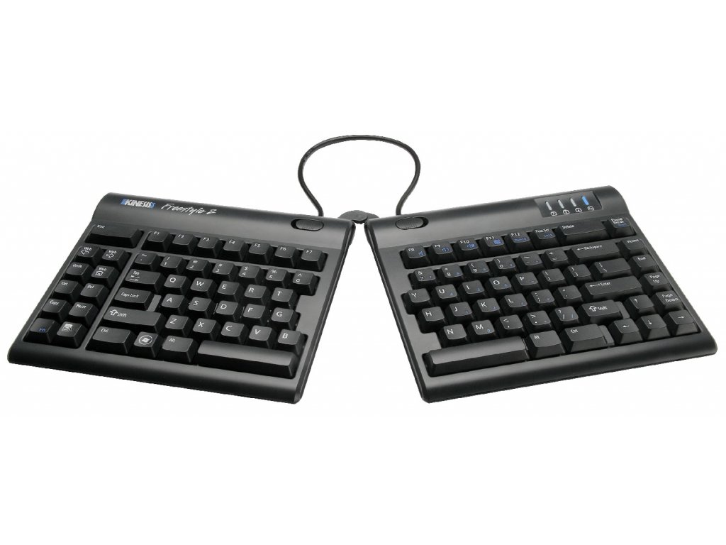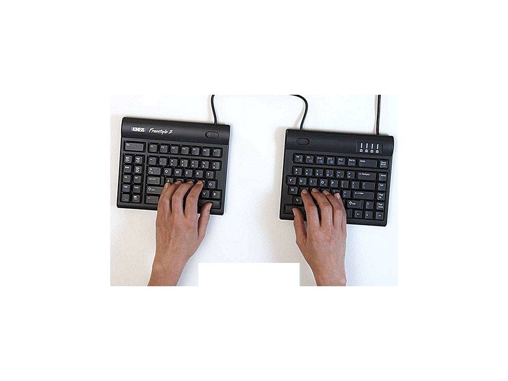 Klávesnice Freestyle2 nabízí maximální flexibilitu při zajišťování individuálních požadavků každého jednotlivce. Z krabice jsou oba moduly vzájemně propojeny flexibilním otočným kloubem umožňujícím nekonečnou škálu rozevření. Rozpojení otočného kloubu umožňuje úplné oddělení levého a pravého klávesového modulu až o 23 cm. Ideální pro individuální potřeby v rozmezí úzkého rozvržení až po úplné oddělení. Tento design výrazně snižuje a nebo eliminuje ulnární deviaci (kloubní deformitu prstů).