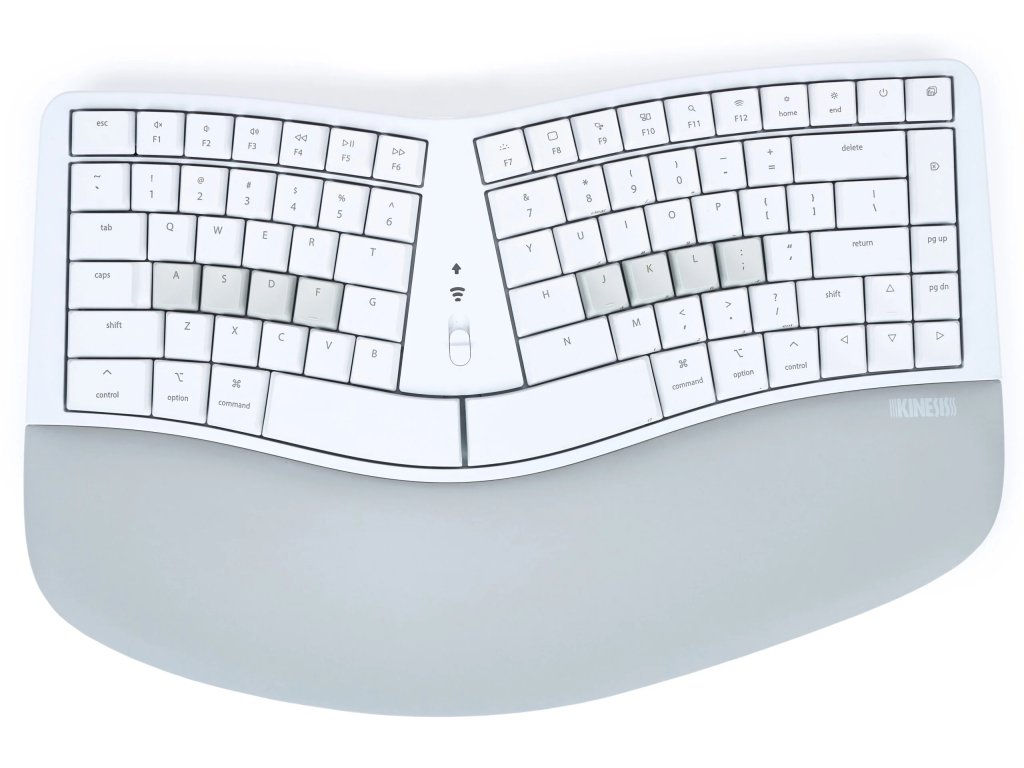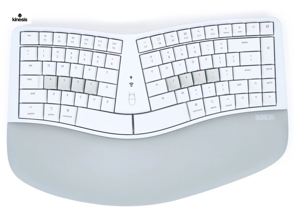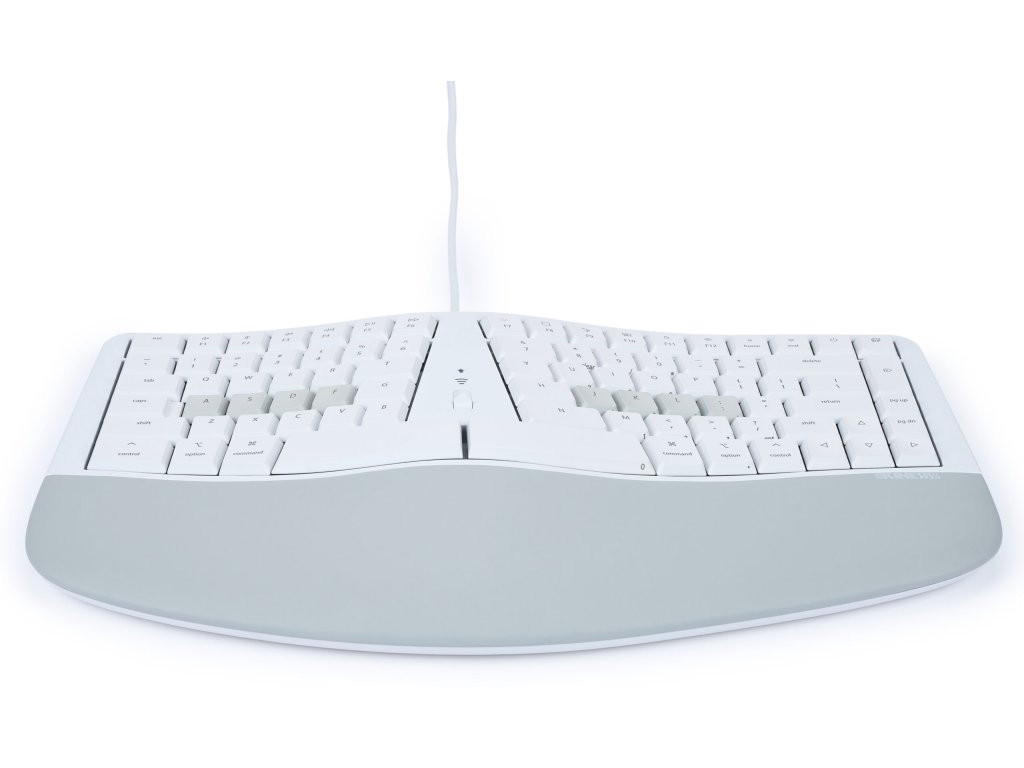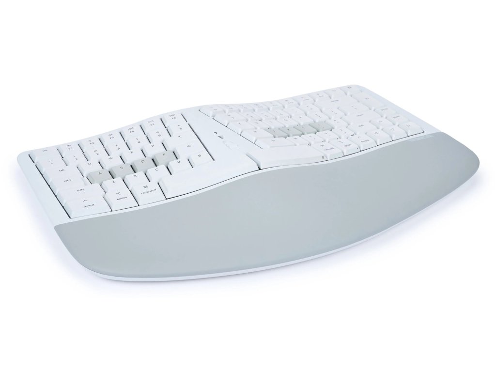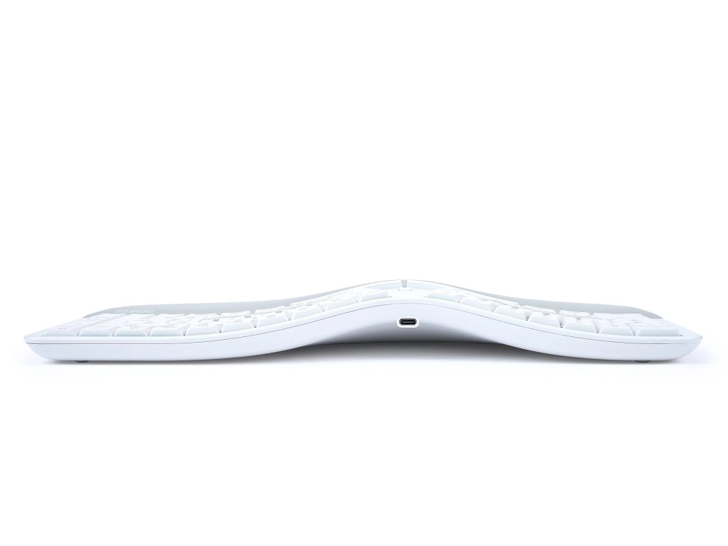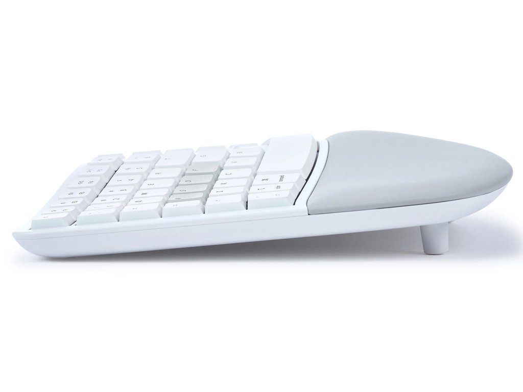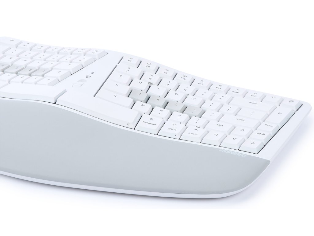 - Integrované nastavení sklonu: Nastavení sklonu zvedá palcovou stranu ruky pro snížení pronace předloktí, které způsobuje běžná plochá klávesnicemi.