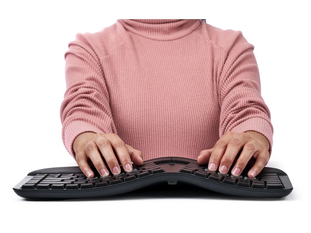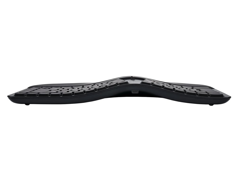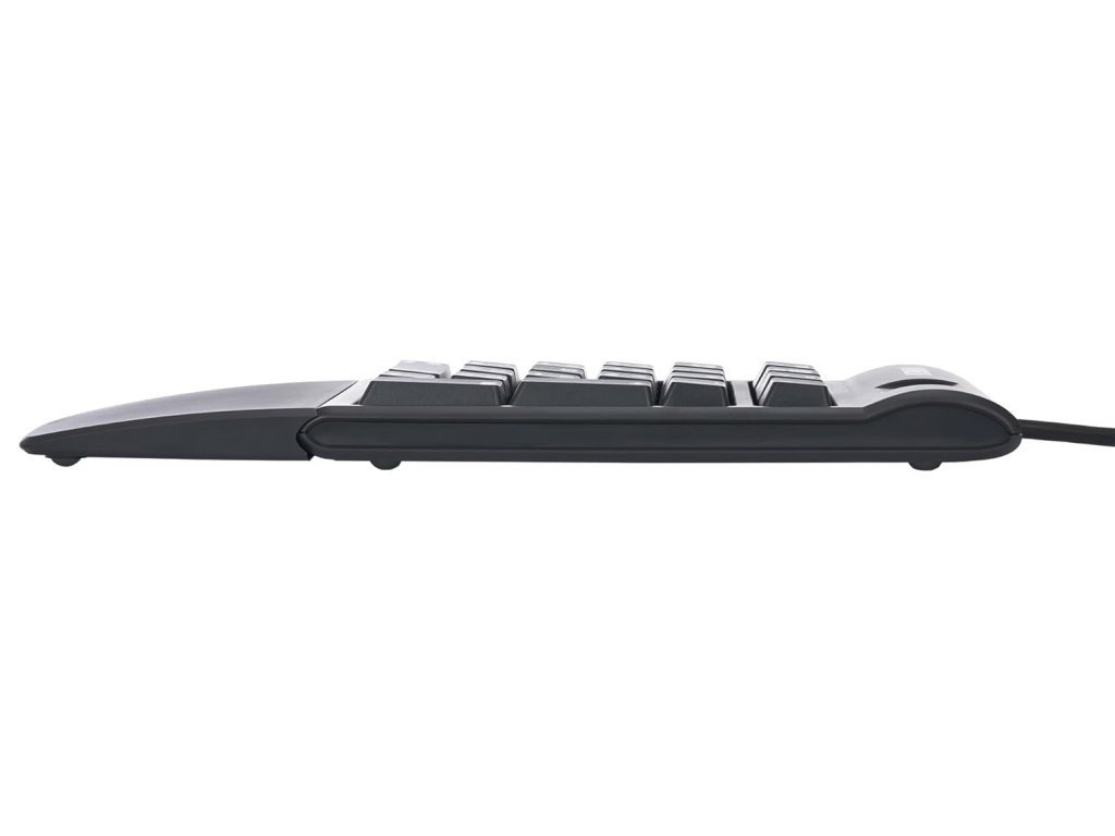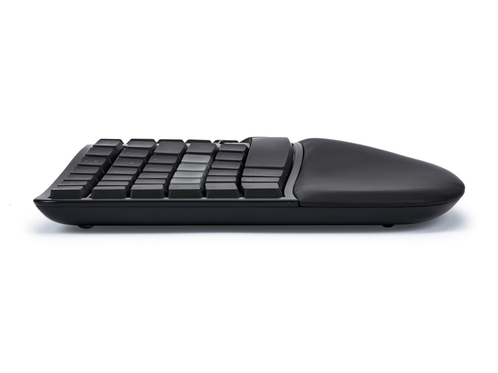 - Integrované nastavení sklonu: Nastavení sklonu zvedá palcovou stranu ruky pro snížení pronace předloktí, které způsobuje běžná plochá klávesnicemi.