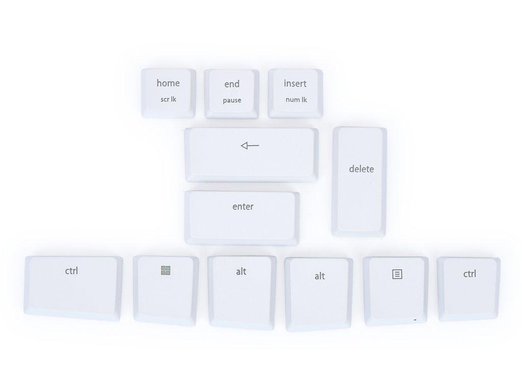 - sada obsahuje tyto klávesy: Left Ctrl, Left Windows, Left Alt, Right Alt, Menu, Right Ctrl, Backspace, Enter, Delete, Home (Scroll Lock), End (Pause), Insert (Num Lock)