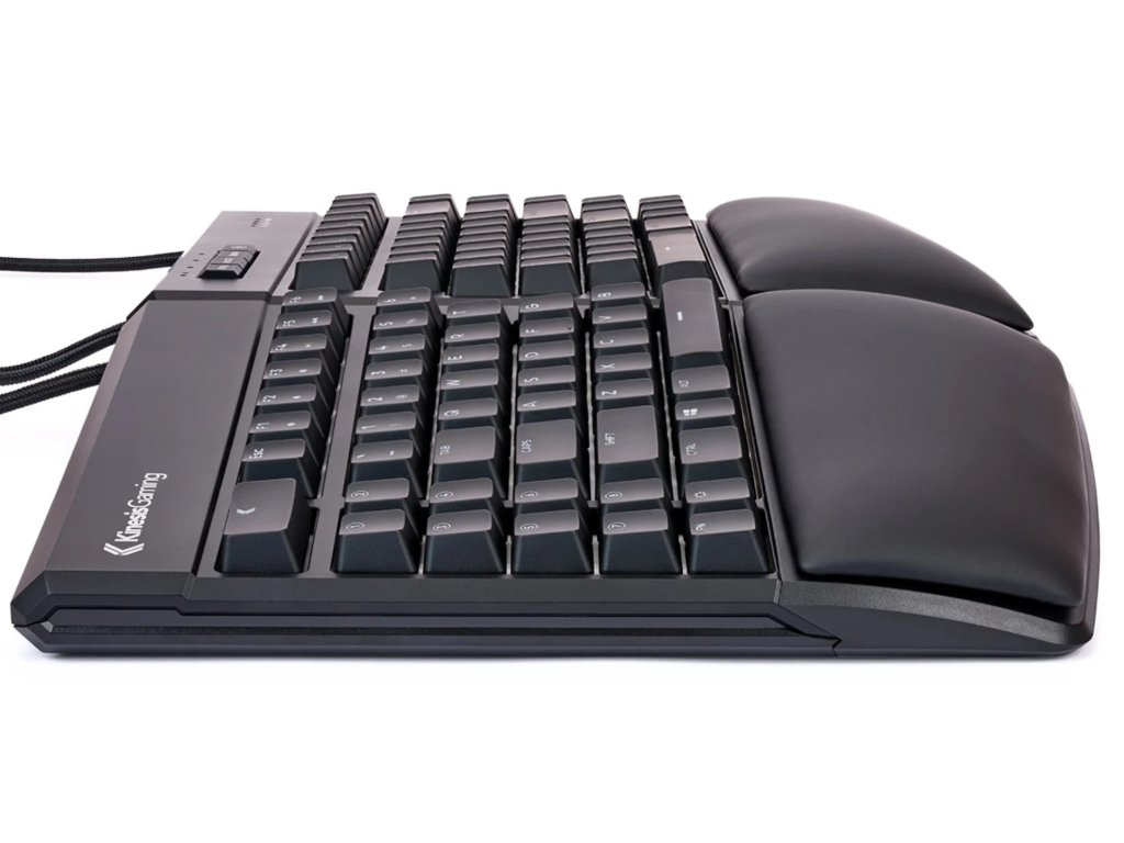 Stejně jako Freestyle2 si i Freestyle Edge RGB PLUS zachovává nulový sklon zepředu dozadu. Většina klávesnic, včetně ergonomických modelů, má pozitivní sklon 10 stupňů. Tyto konstrukce mají tendenci ohýbat zápěstí. Nulový sklon Edge a polstrovaná opěrka dlaně snižují výšku, čímž efektivně vytvářejí negativní sklon a omezují natažení zápěstí.