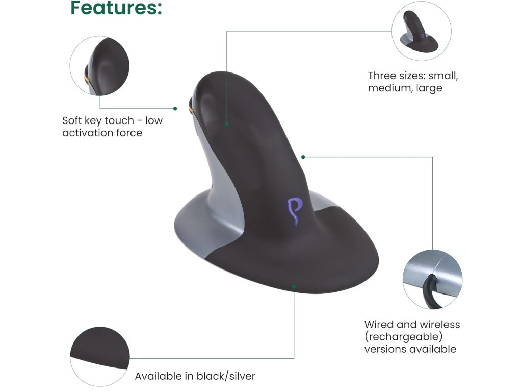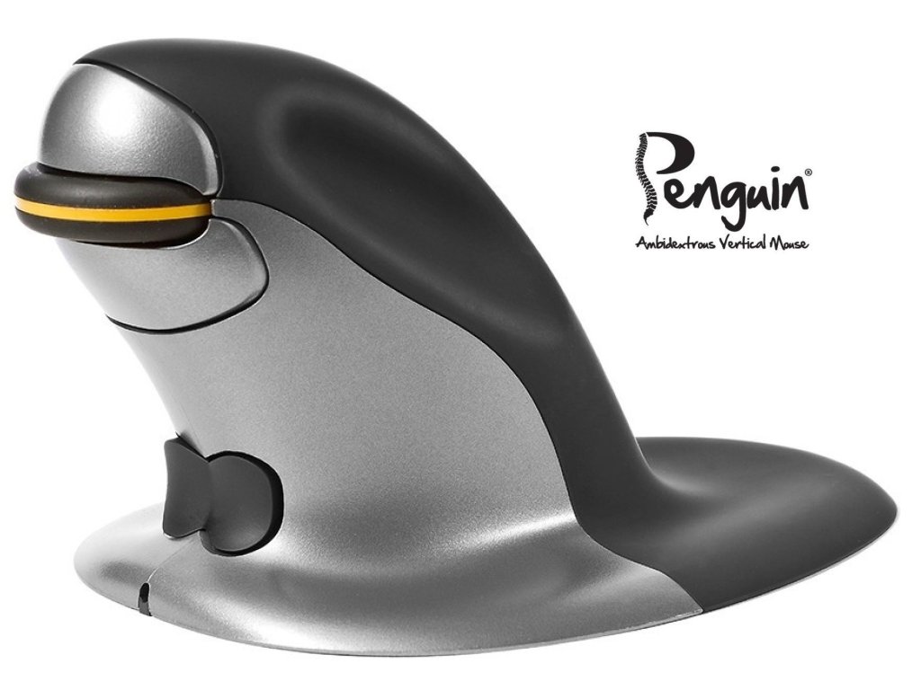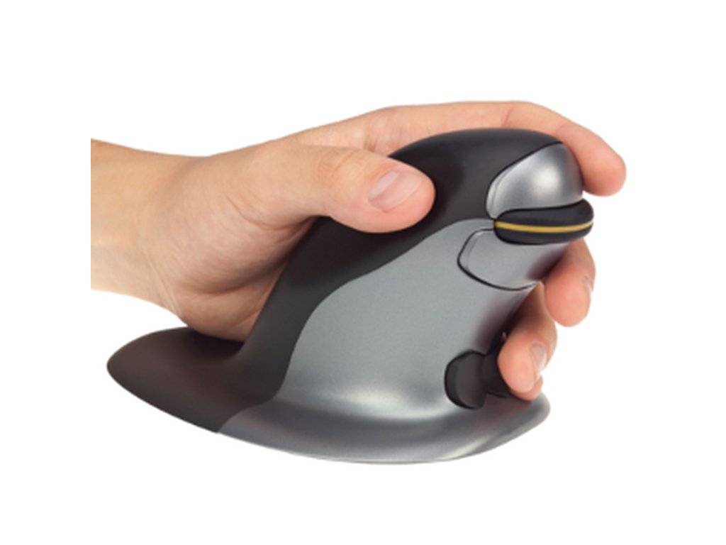 Vertikální obouruká myš Penguin bezdrátová MEDIUM představuje zásadní průlom v zamezení zdravotních potíží, pokud uživatelé tráví mnoho času u počítače. Stanovuje nové standardy ochrany proti řadě poškození horních končetin z opakovaného namáhání a syndromu karpálního tunelu (RSI). Je nutné si rozdělit přehnané pohyby zápěstí, které můžou zvýšit tlak v měkkých tkáních karpálního tunelu. Pravidelné spínání rukou většinu pracovního dne zabraňuje statickému napětí svalů (SMS), což je významný zdroj nepohodlí při práci s vertikální myší.