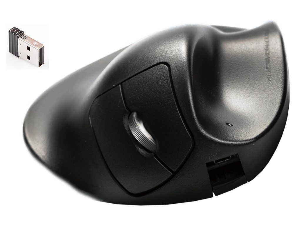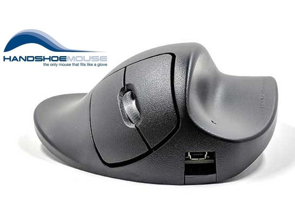 Bezprzewodowa mysz dla praworęcznych myszy HandShoe Mouse ma 3 przyciski, w tym kółko przewijania. Lewy i prawy przycisk myszy są kontrolowane przez palec wskazujący i środkowy. Kółko przewijania może służyć do nawigacji i można nim sterować palcem wskazującym lub środkowym. Ergonomiczna mysz „HandShoe Mouse” utrzymuje ramię w naturalnej pozycji i minimalizuje ryzyko konsekwencji długotrwałego używania myszy komputerowej.