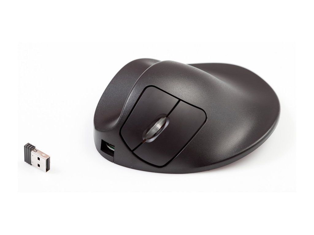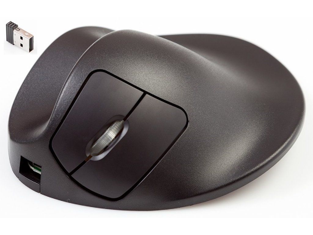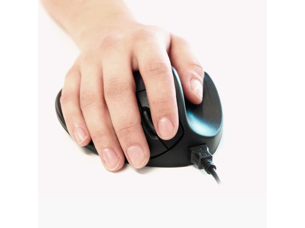 Bezprzewodowa mysz dla leworęcznych myszy HandShoe Mouse ma 2 przyciski. Lewy i prawy przycisk myszy są kontrolowane przez palec wskazujący i środkowy. Kółko przewijania może służyć do nawigacji i można nim sterować palcem wskazującym lub środkowym. Ergonomiczna mysz „HandShoe Mouse” utrzymuje ramię w naturalnej pozycji i minimalizuje ryzyko konsekwencji długotrwałego używania myszy komputerowej.