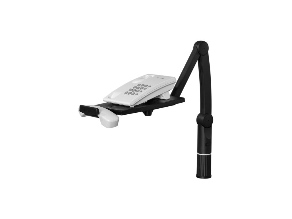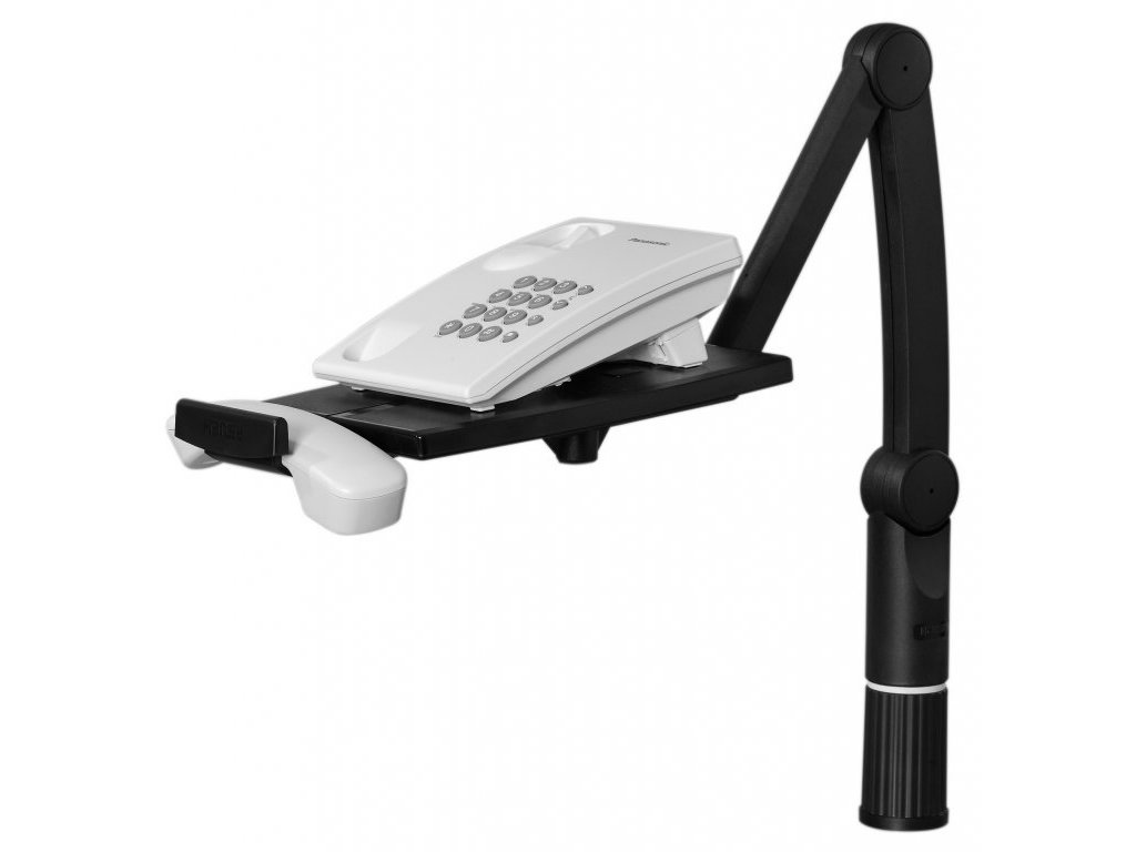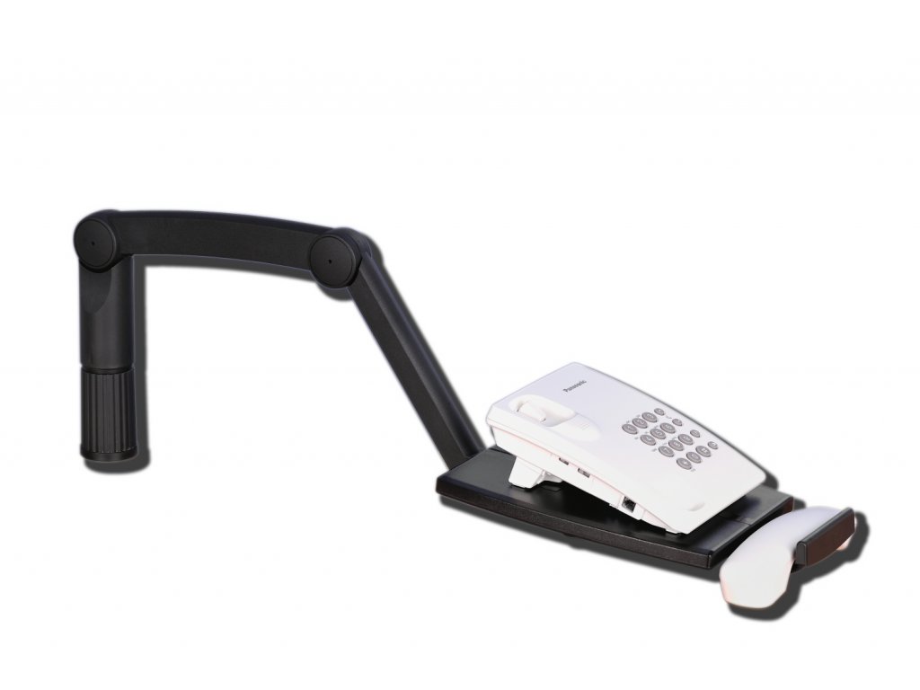 Podstawka do telefonu Hansa jest przegubowa, regulowana i obracana o 360°. W pozycji podstawowej osiąga całkowitą wysokość 480 mm, wysokość płyty telefonicznej wynosi 250 mm nad stołem i rozciąga się na odległość 530 mm (zawsze łącznie z uchwytem). Przesuwając go do pozycji pośredniej, wysuwa się na odległość 710 mm i na wysokość 130 mm. W skrajnym położeniu płytkę pod telefonem ustawiamy na stole na odległość 750 mm. Tę deskę o wymiarach 170 mm x 260 mm można obracać o 90° podczas montażu. Jeżeli posiadasz większy telefon polecamy rozbudować go o wsuwaną płytkę - szarą. Stojak mocowany jest do blatu stołu w zakresie 20-72 mm za pomocą zacisku, który zawsze jest częścią produktu. Inną możliwością zamocowania stojaka jest przymocowanie go za pomocą śrub, które nie są dołączone do zestawu i należy je zamówić osobno.