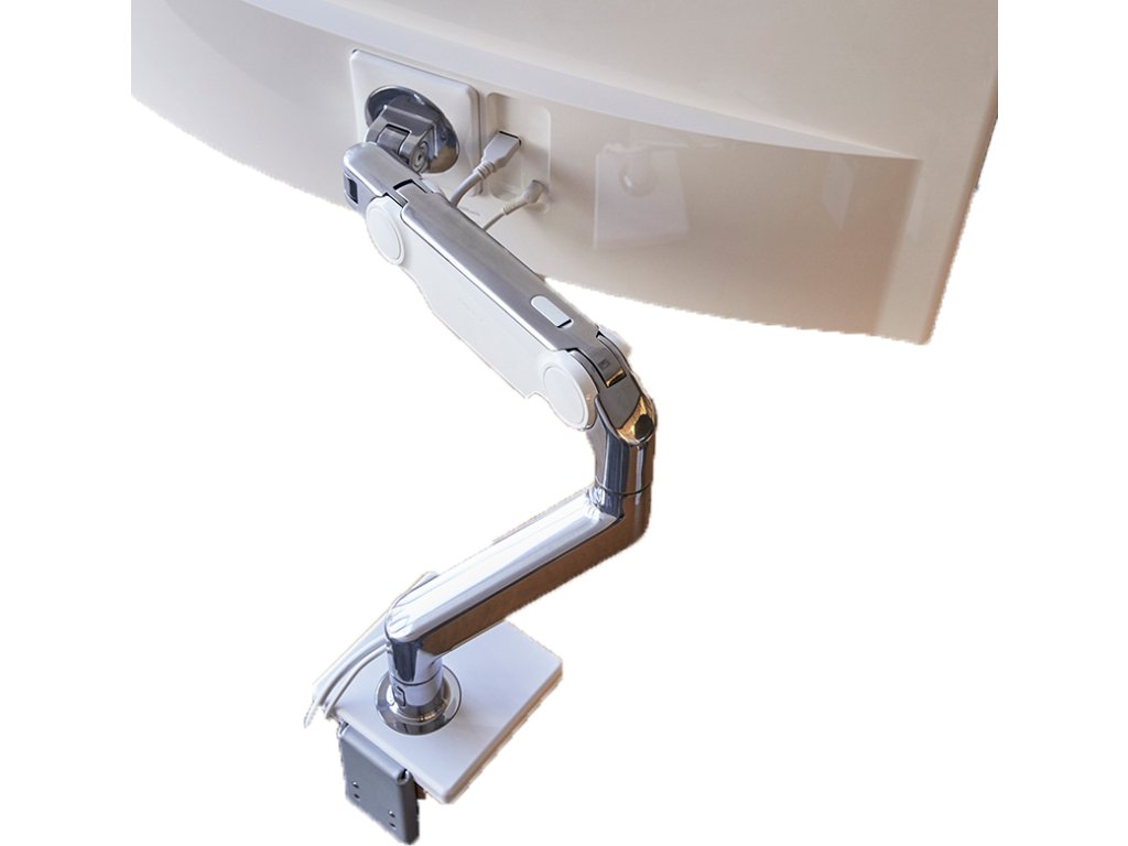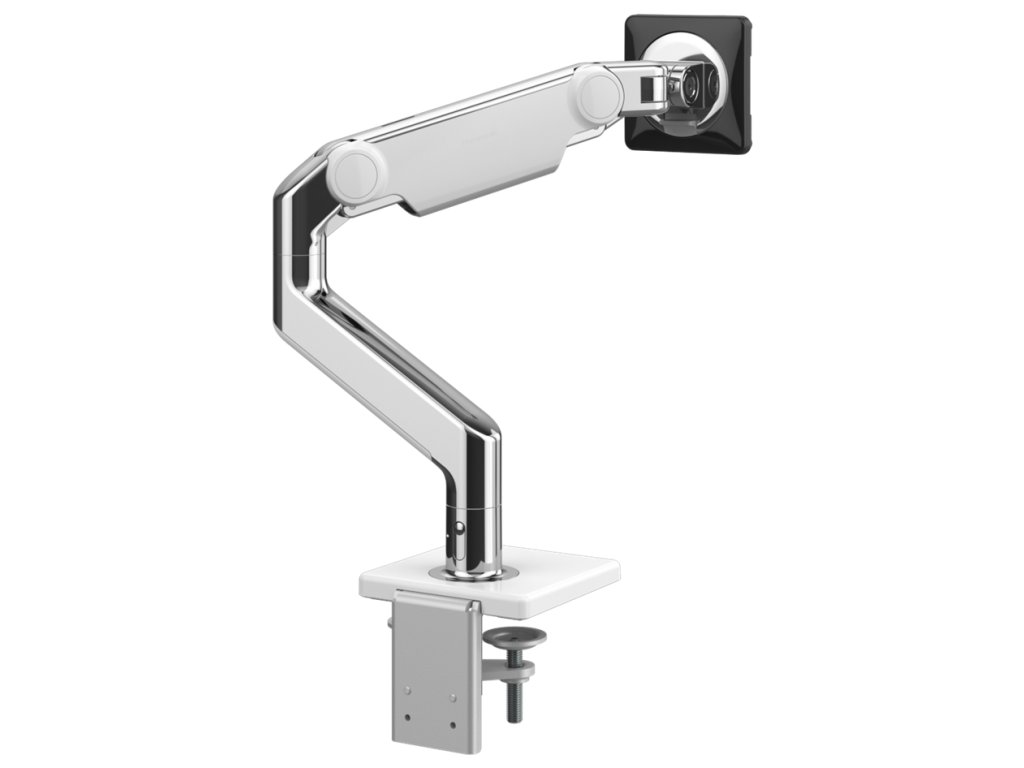 Specyfikacje: ramię Humanscale model M10 do cięższego monitora z łączem dynamicznym i stacją dokującą M/Connect 2 do jednego monitora w wersji: aluminium polerowane na biało, montaż na podwójnym zacisku „C” M10M2-CWBTBNA.
