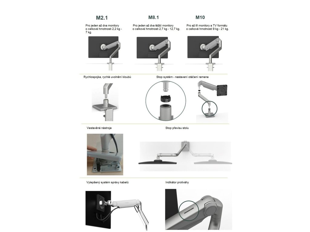 - kompatybilny z M/Connect 2 i M/Power, pierwszymi tego rodzaju zintegrowanymi ramionami monitora i stacjami dokującymi