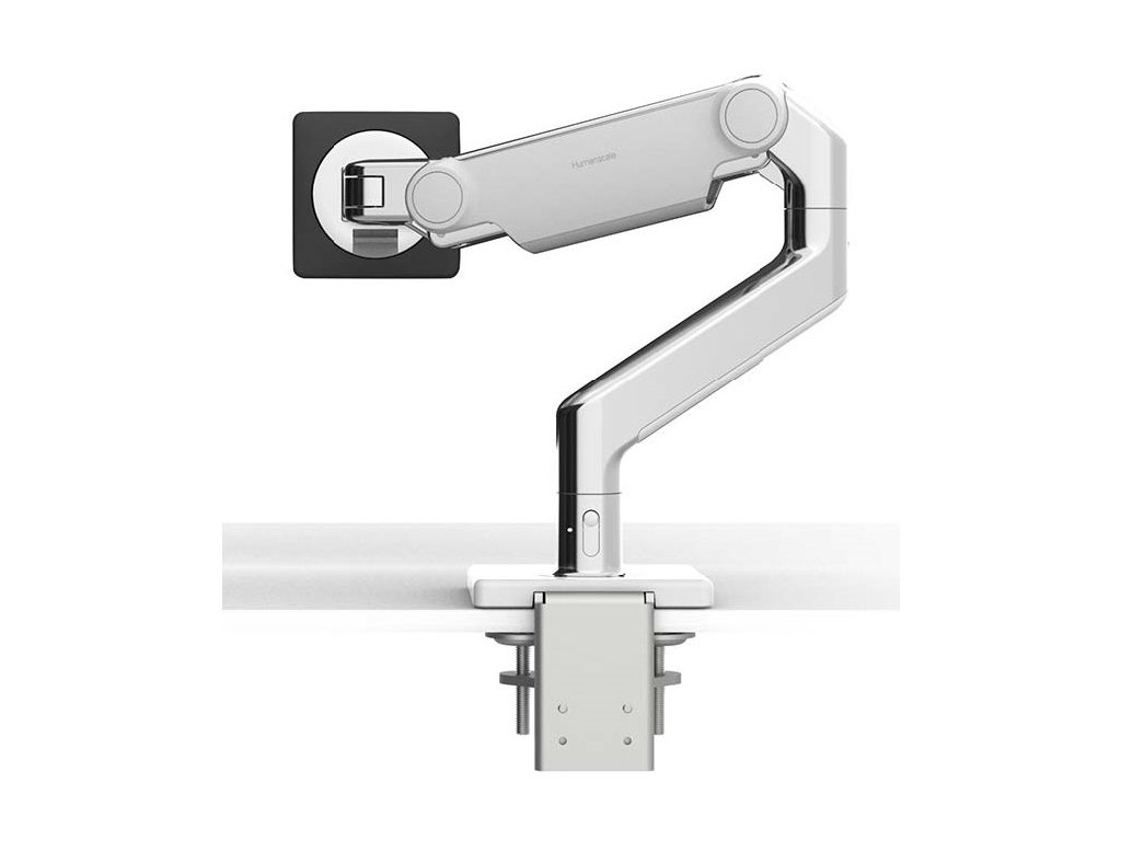 Stojak na monitor Humanscale M10 ze stacją dokującą M/Connect 2 Uchwyt zaciskowy z polerowanego na biało aluminium