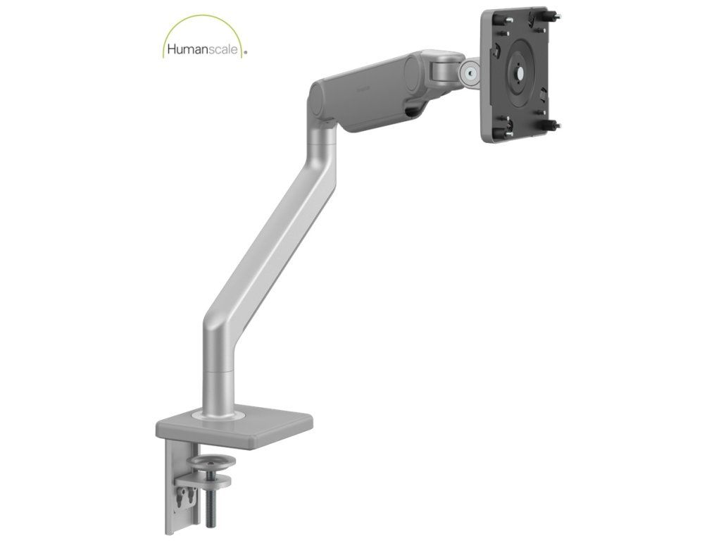 Specyfikacje: ramię Humanscale model M2.1 z dynamicznym łączem do jednego monitor w wersji dwukolorowej: srebrno-szare, mocowanie na prostym zacisku „C” M21NTNCSBTG.