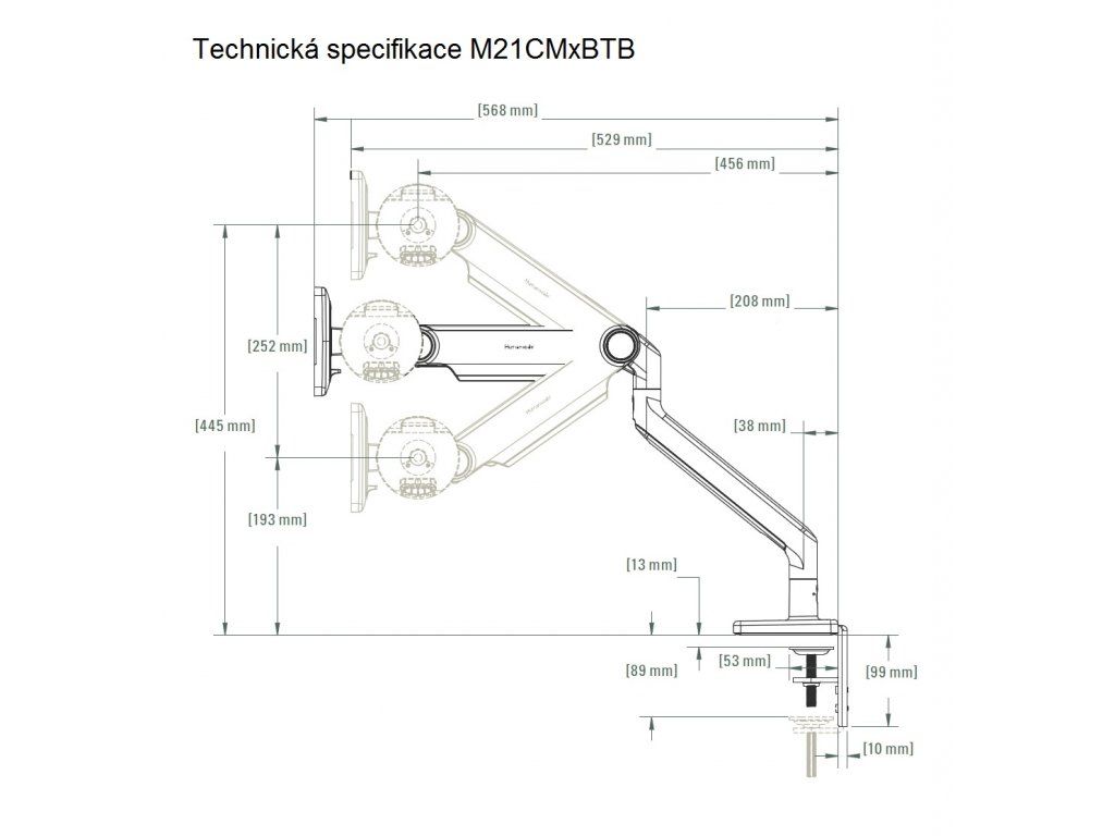 - zakres regulacji odległości monitora: do 568 mm