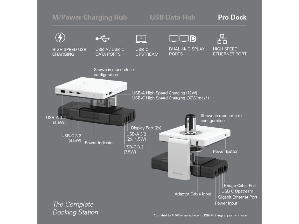 - kompatybilny z M/Connect 2 i M/Power, pierwszymi tego typu zintegrowanymi ramionami monitora i stacjami dokującymi (brak w zestawie)