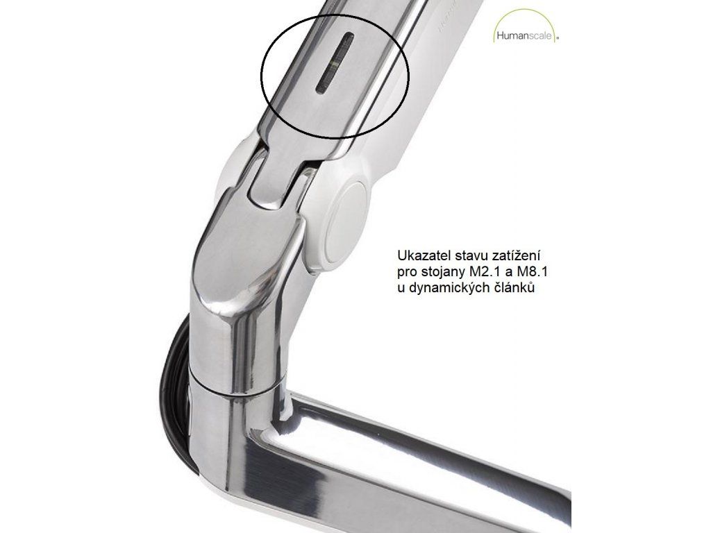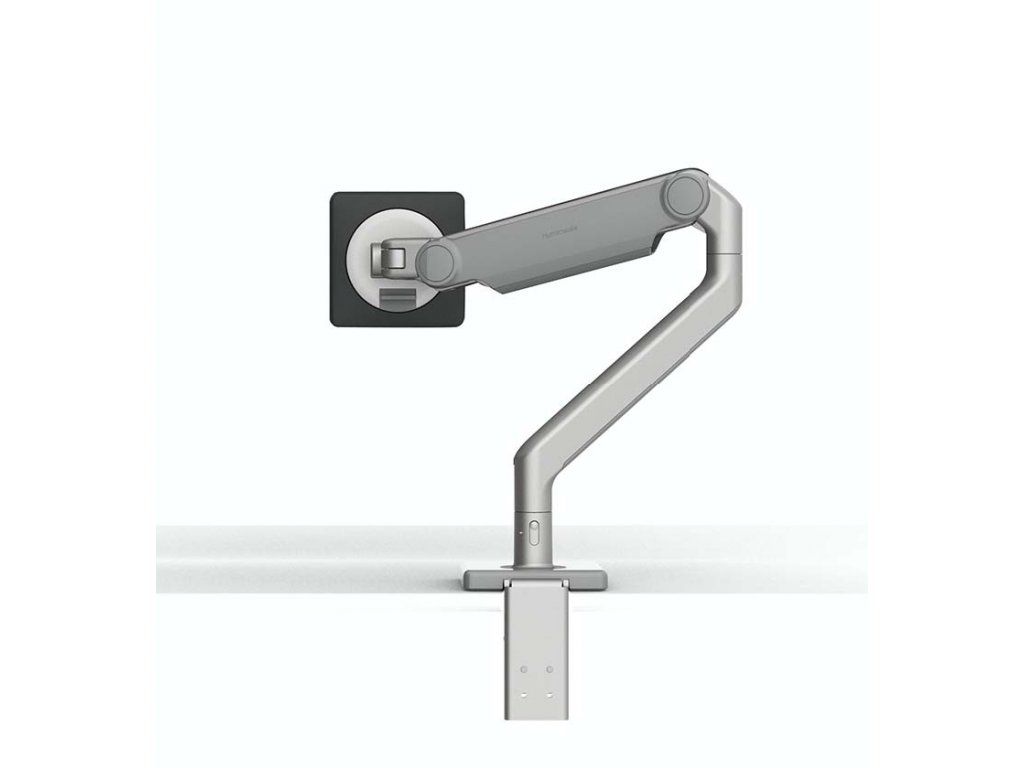 Specyfikacje: ramię Humanscale model M2.1 z dynamicznym łączem do jednego monitora w wersji dwukolorowej: srebrno-szare, mocowane na prostym zacisku „C” M21TBS.