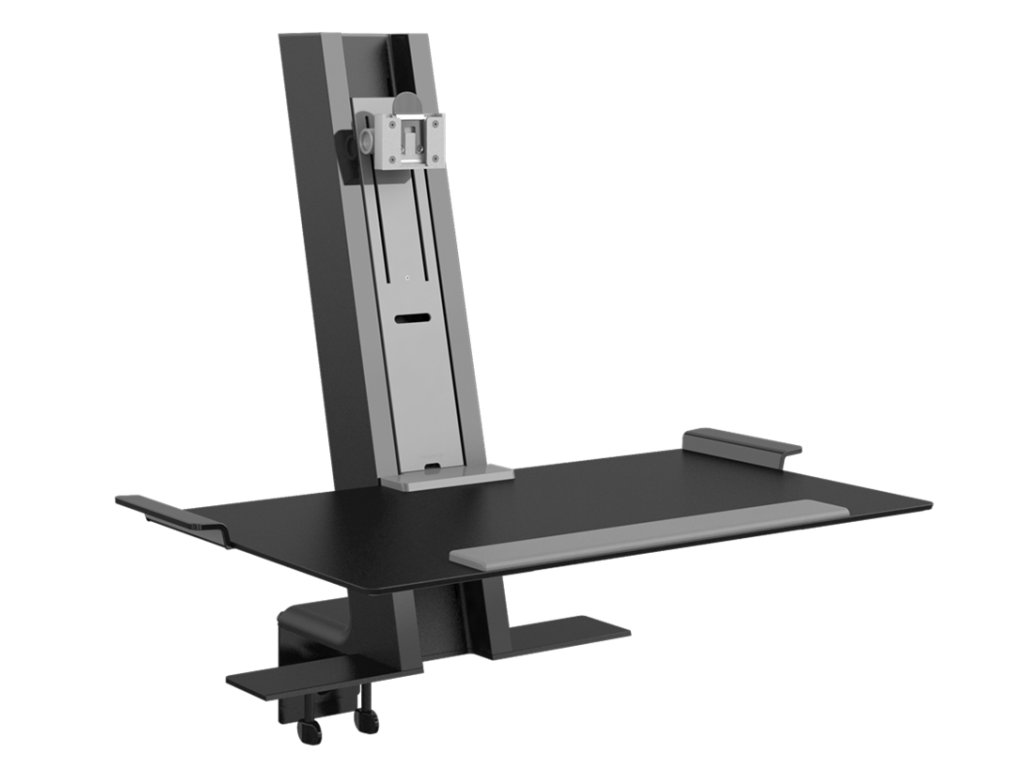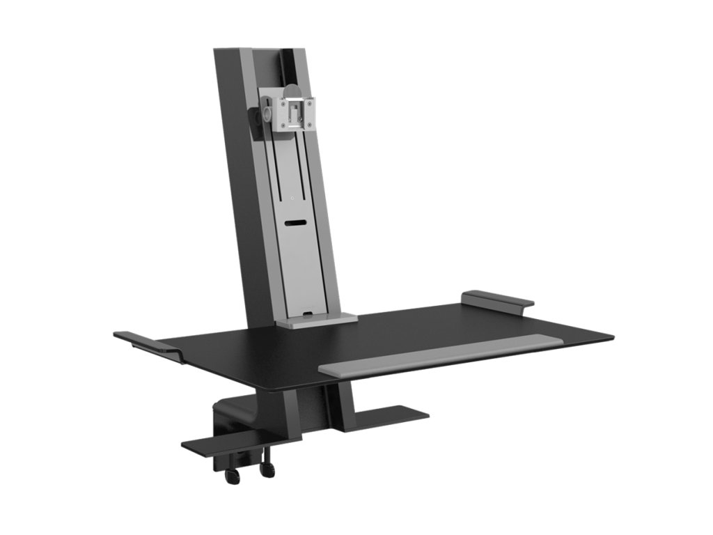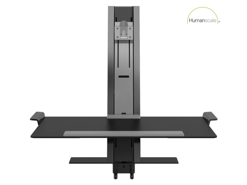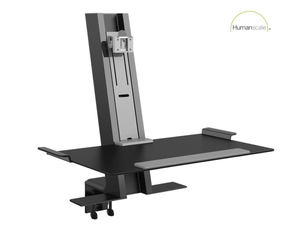 Specyfikacje: QuickStand Model Humanscale QSBH30CNN, na jeden monitor z blatem, czarno-szara konstrukcja, mocowany na zacisku.