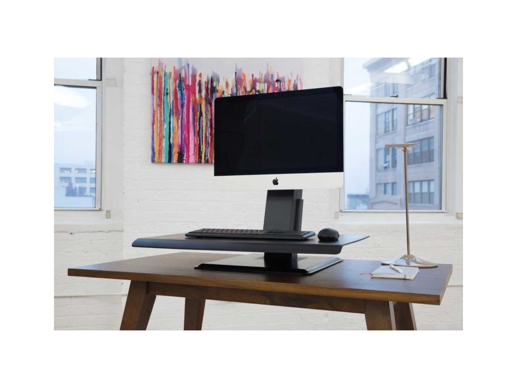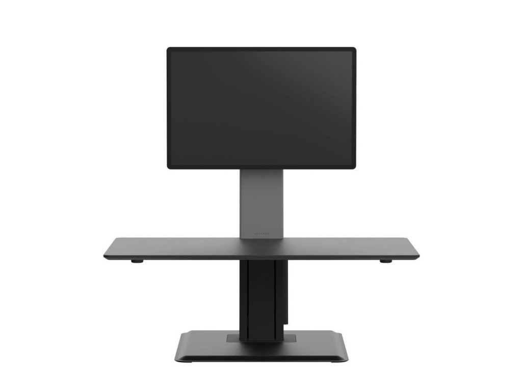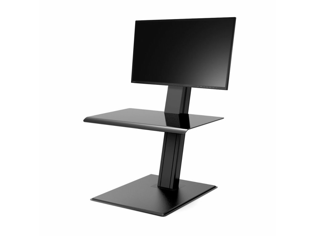 Specyfikacje: QuickStand ECO Model w skali ludzkiej QSEBS, na jeden monitor, blat o wymiarach 483 x 711 mm, kolor czarny.